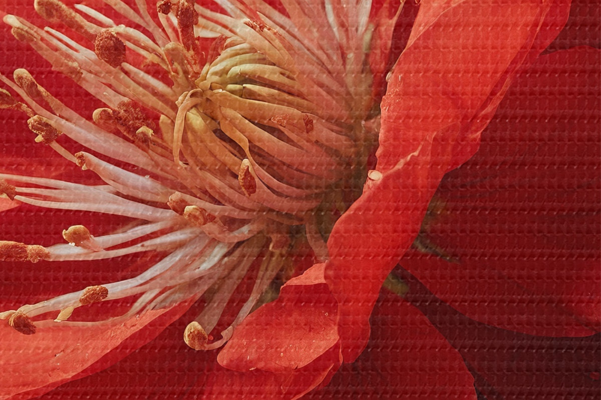 Selle lõuendi peenike niidipunus meenutab professionaalse kunstniku lõuendi pinda.