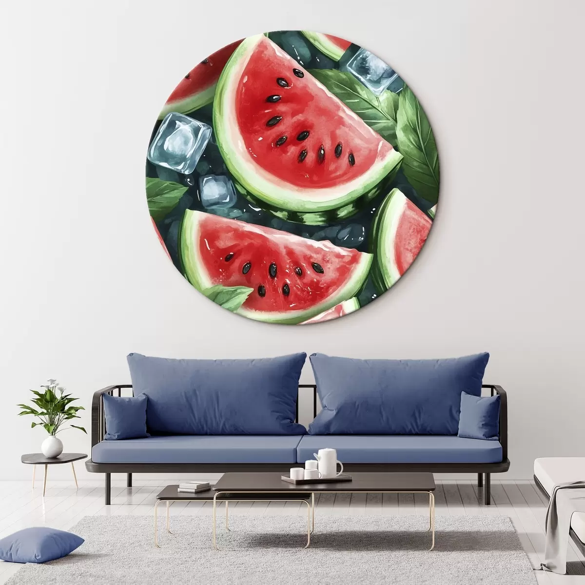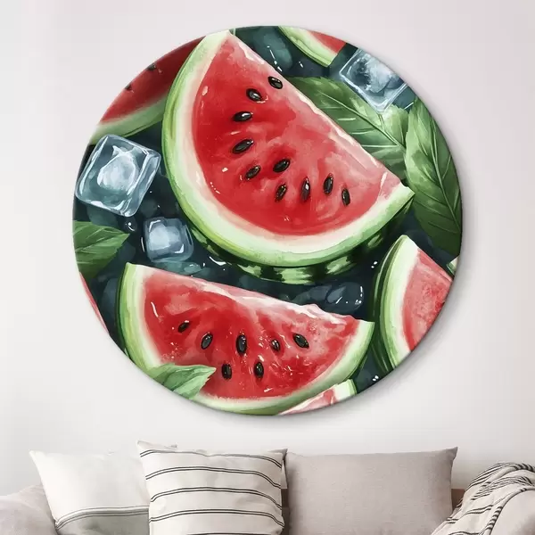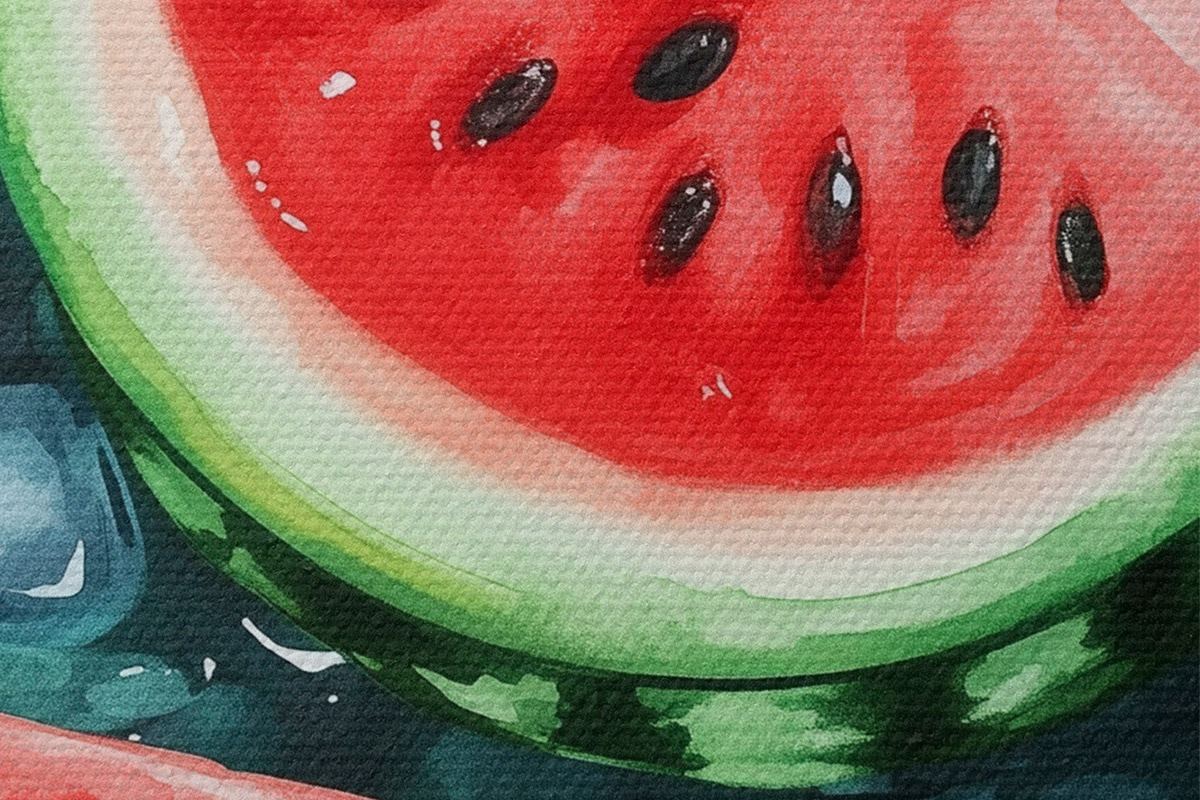 Pilt Arbuusiviilud jääkuubikute ja piparmündiga, akvarellistiilis Nr r43880