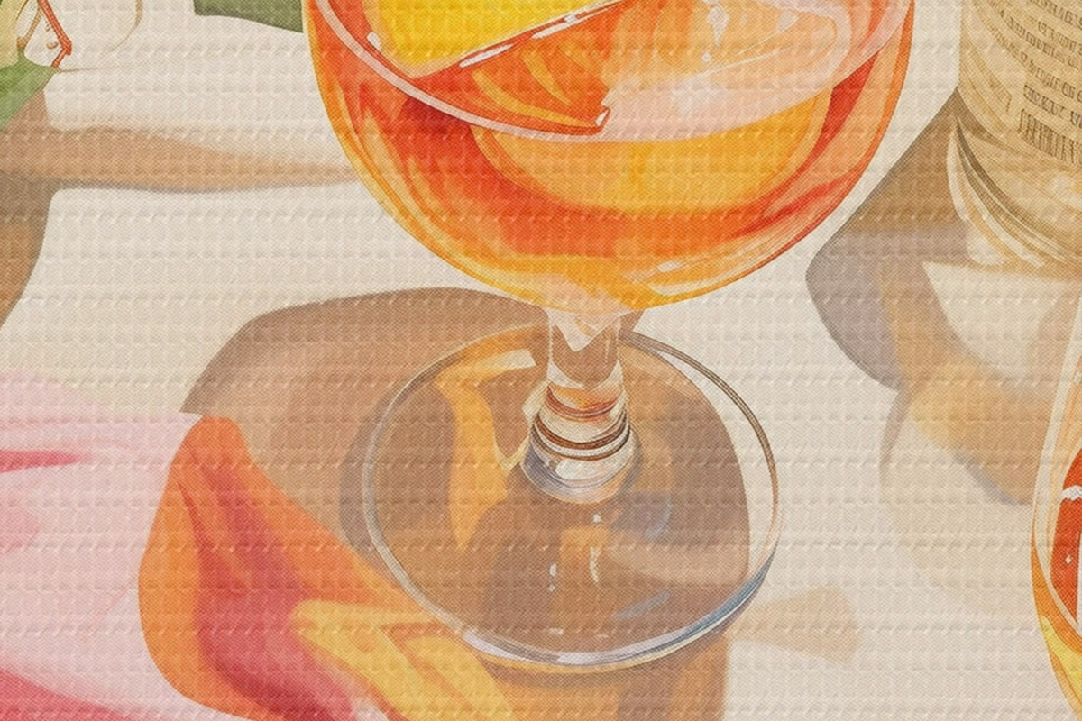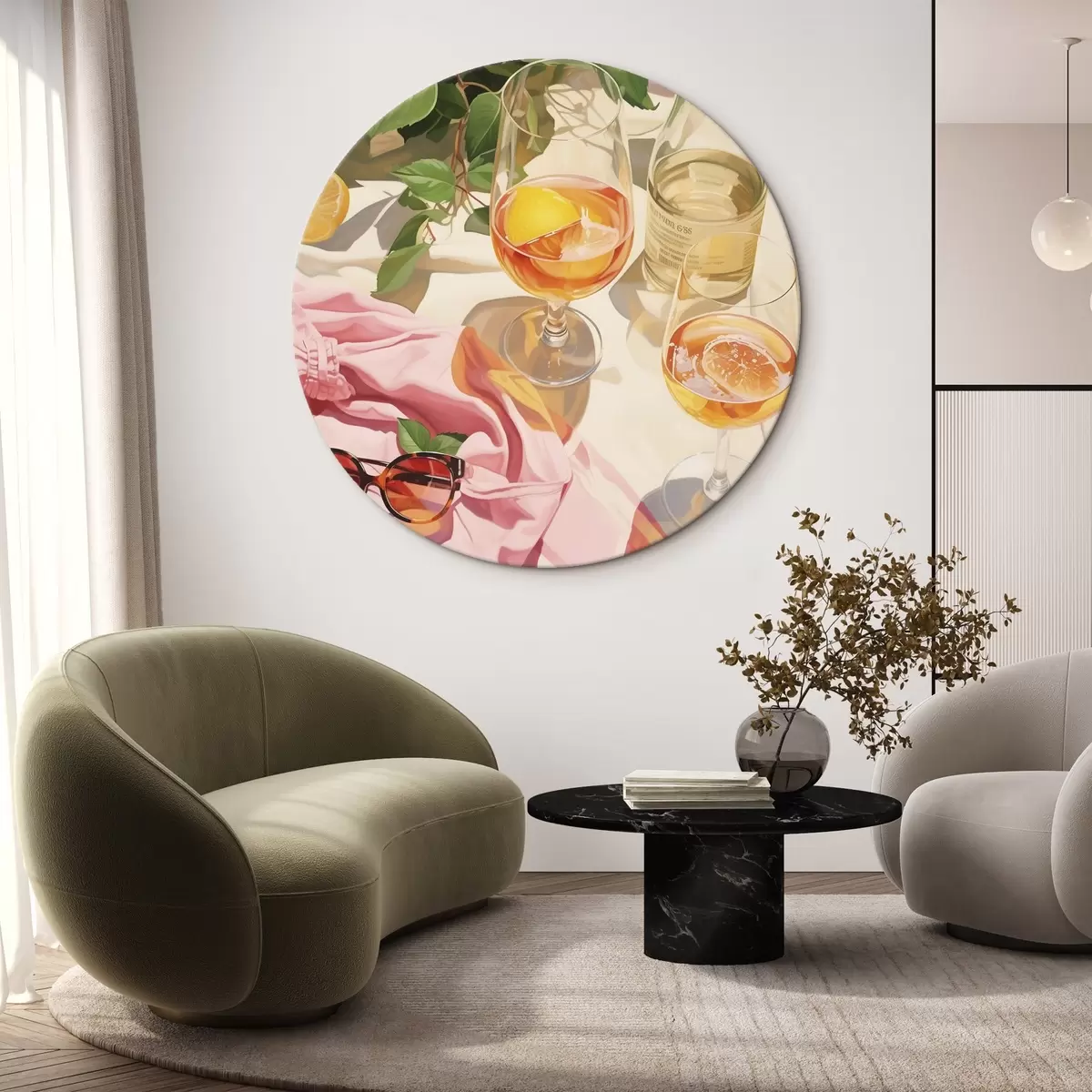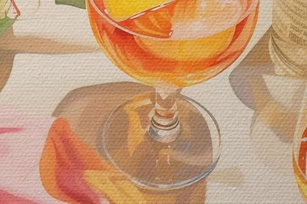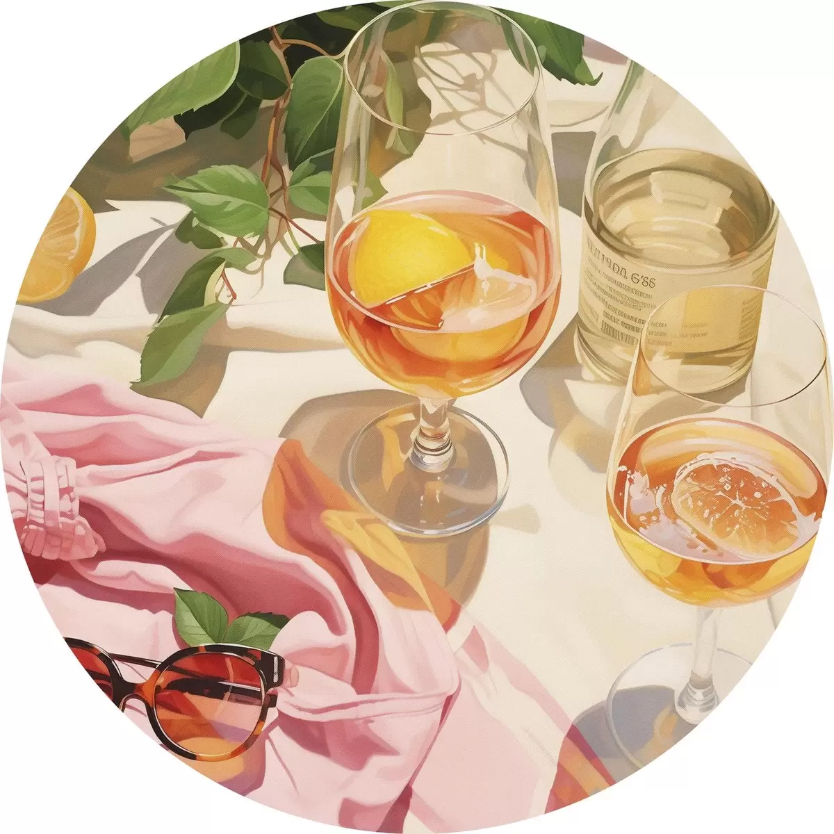 Pilt Suvine aeg, klaasid šampanjaga, rohelised taimed, soojad värvid Nr r43885