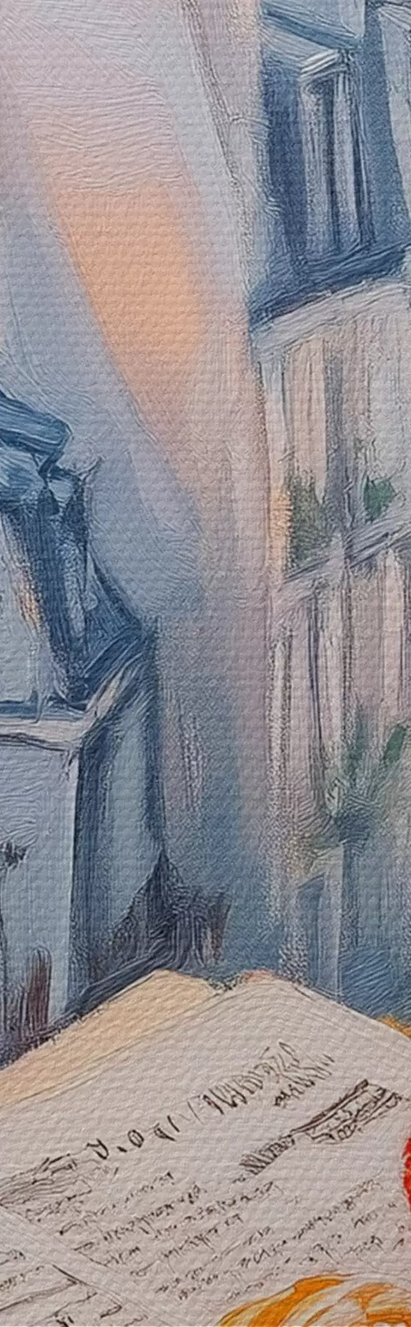 Selle lõuendi peenike niidipunus meenutab professionaalse kunstniku lõuendi pinda.