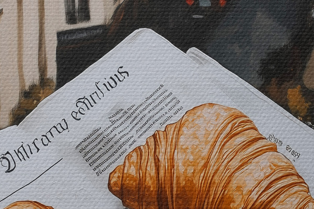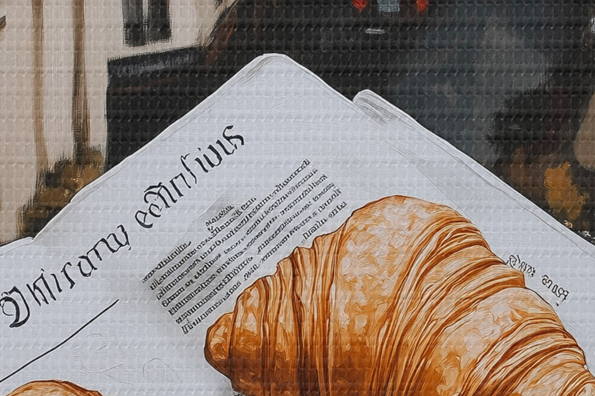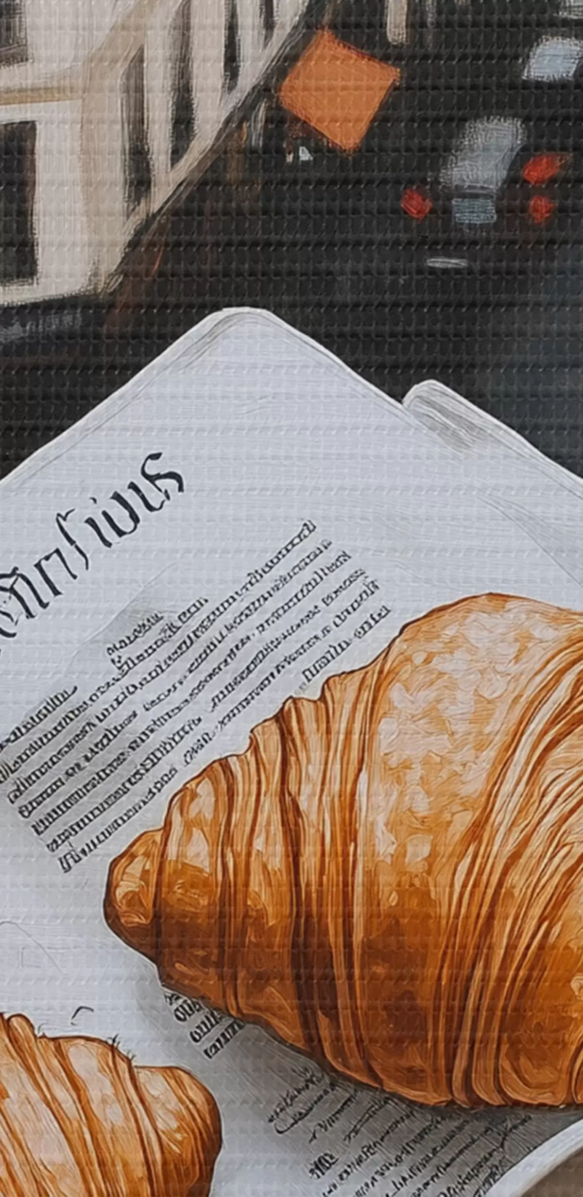 Pilt Hommikukohv croissantidega, linnatänav, arhitektuurne, õlistiilis Nr r43891