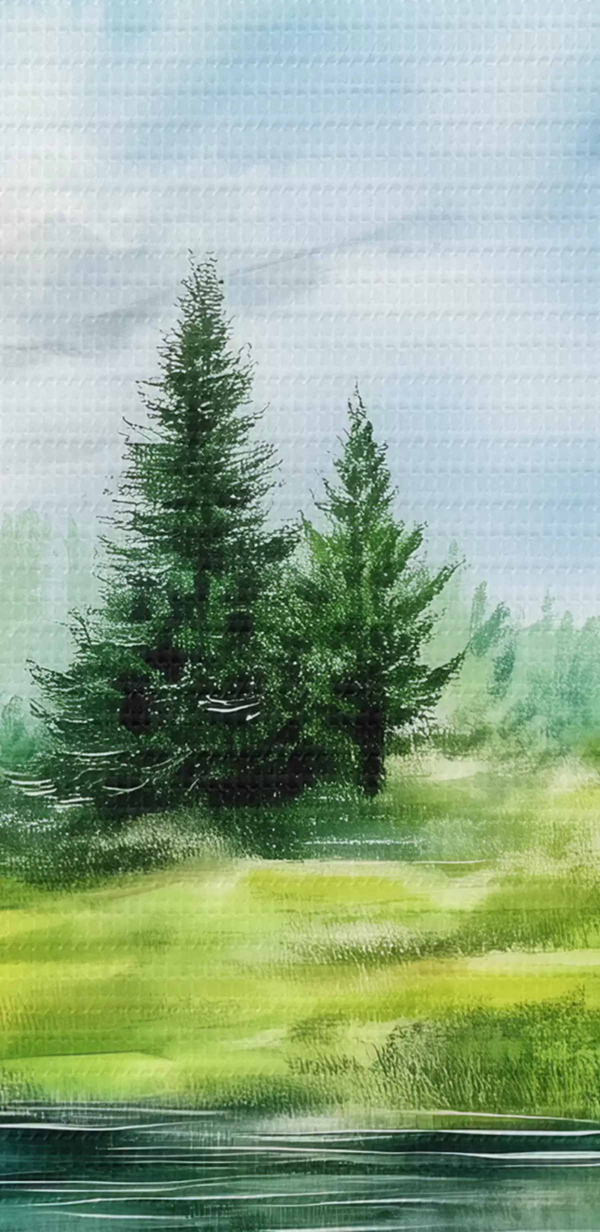 Selle lõuendi peenike niidipunus meenutab professionaalse kunstniku lõuendi pinda.