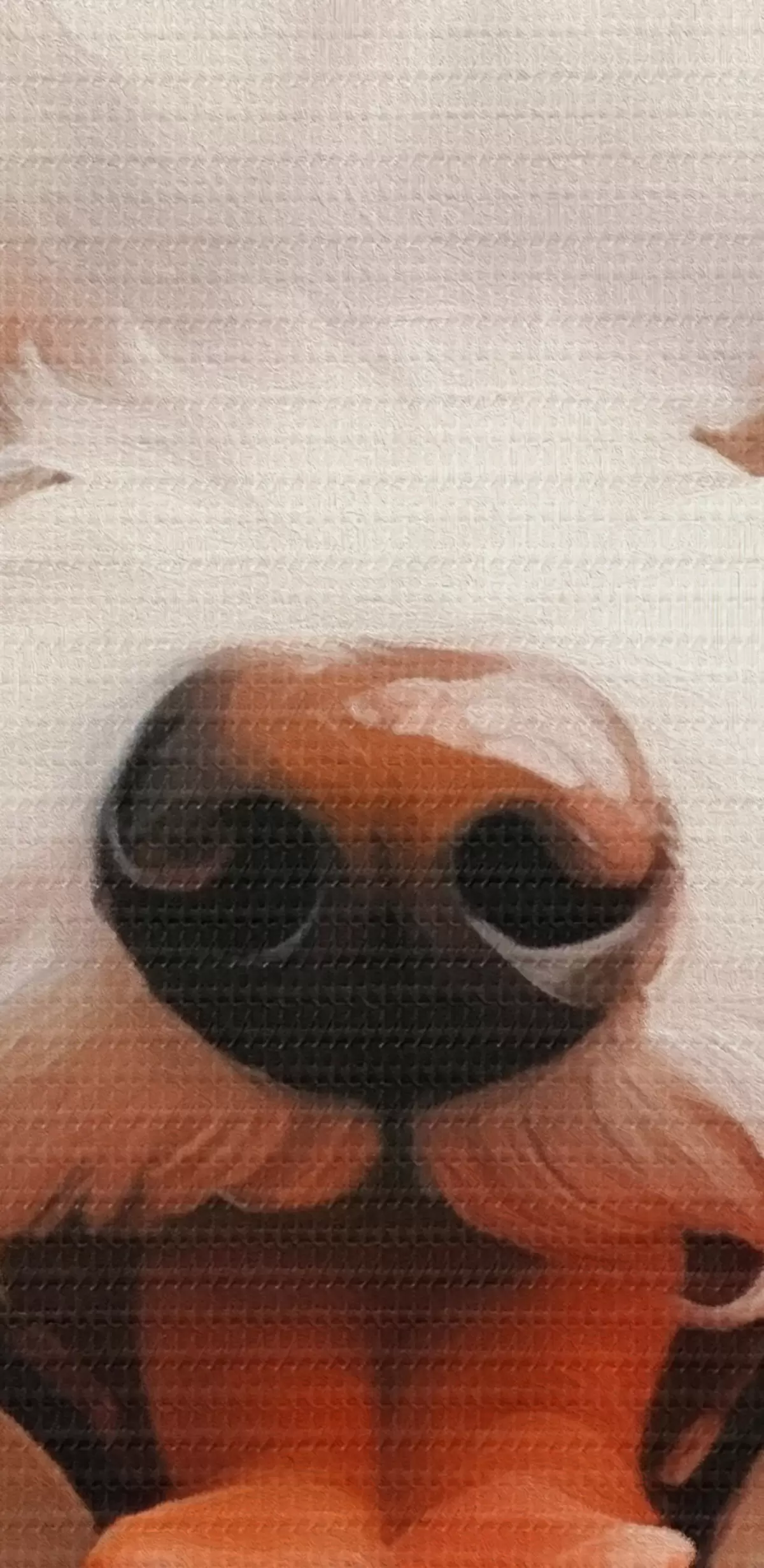 Selle lõuendi peenike niidipunus meenutab professionaalse kunstniku lõuendi pinda.