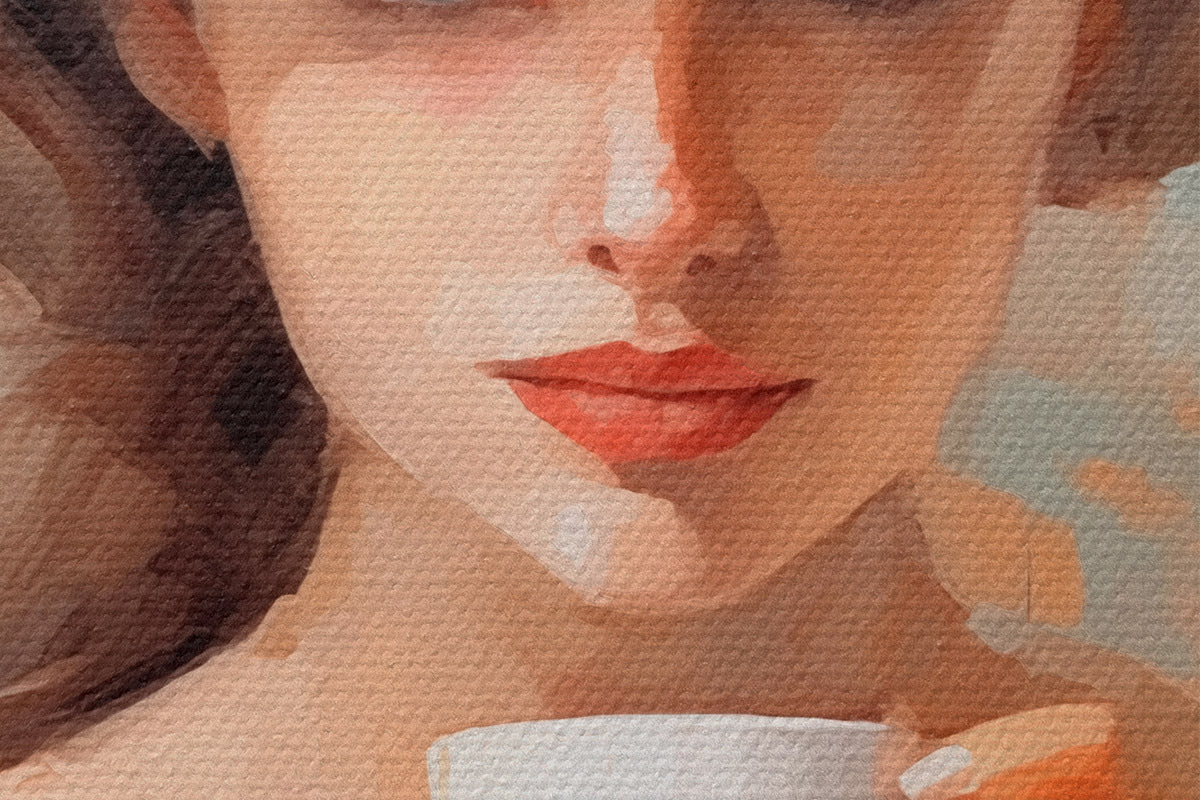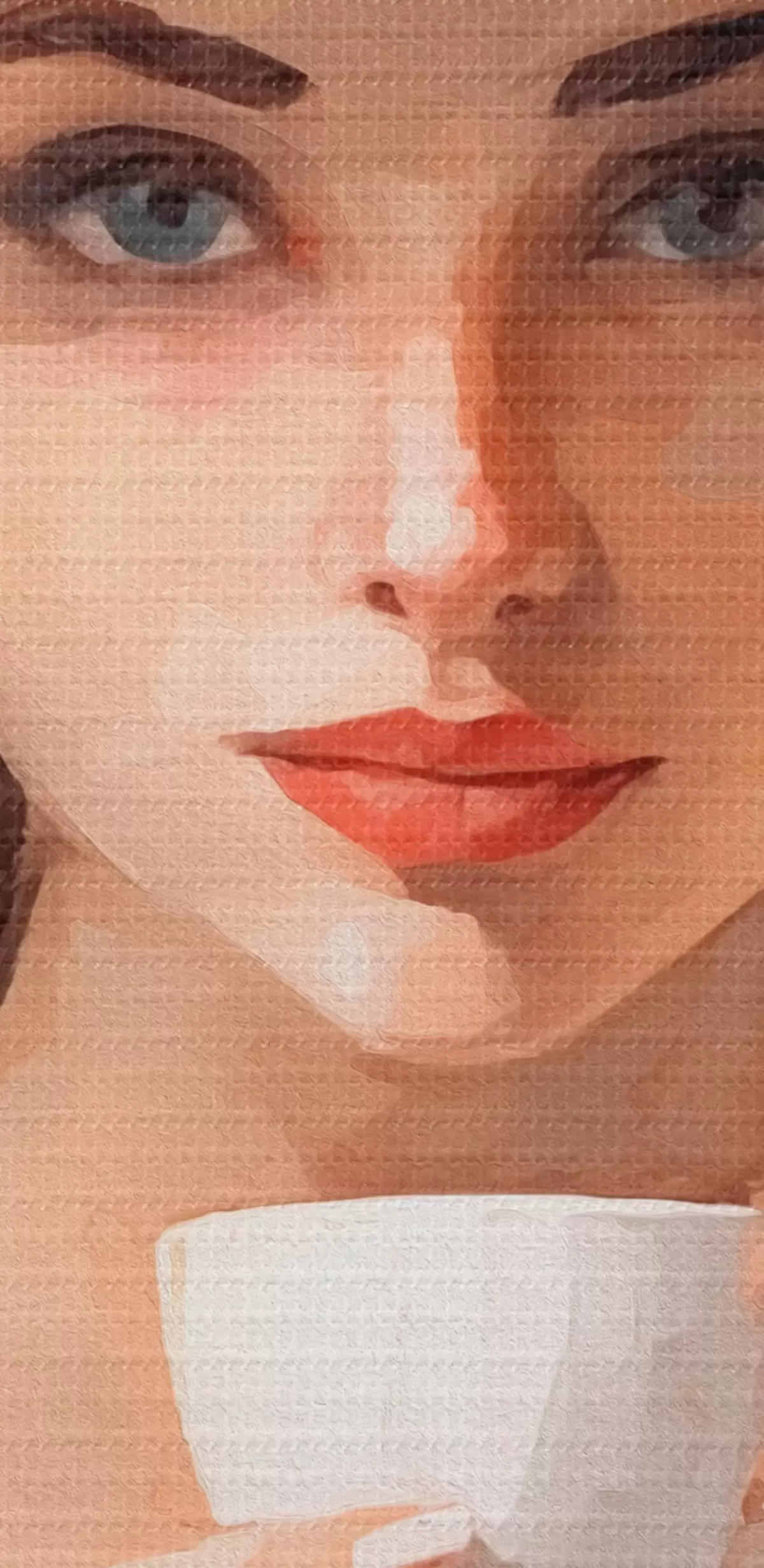 Selle lõuendi peenike niidipunus meenutab professionaalse kunstniku lõuendi pinda.