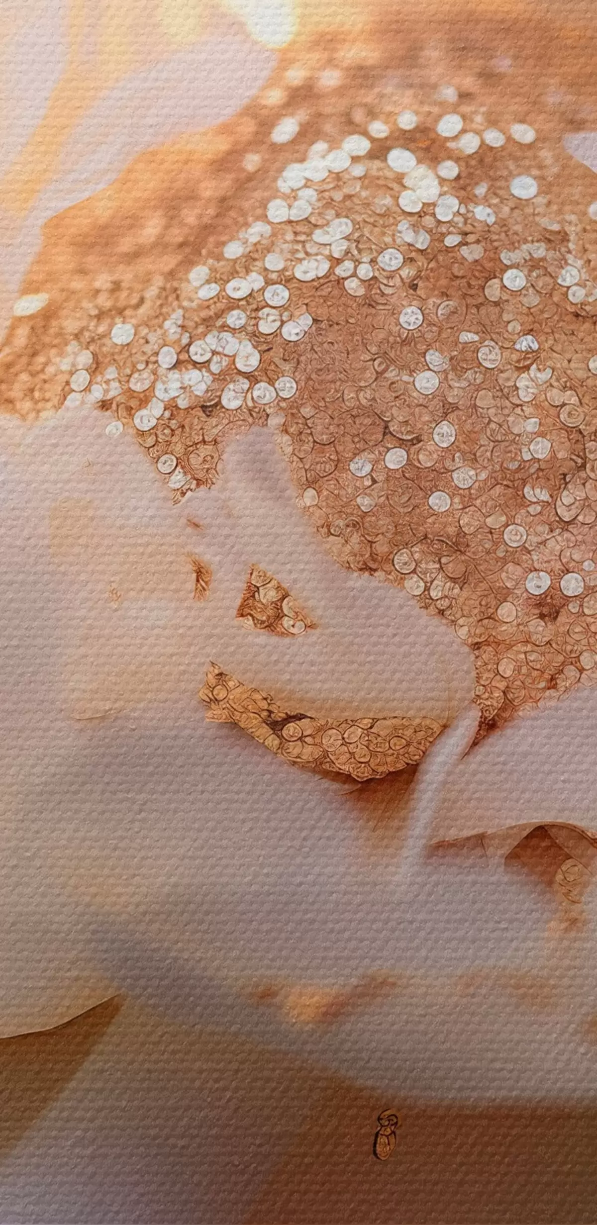 Selle lõuendi peenike niidipunus meenutab professionaalse kunstniku lõuendi pinda.