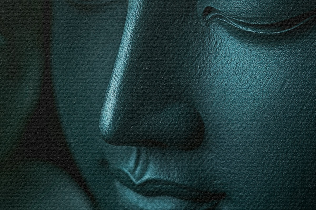 Pilt Buddha rohelistes lehtedes, budism, troopika, realism, realism Nr r44004