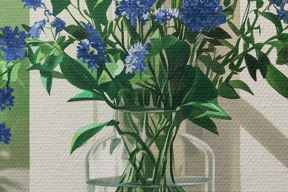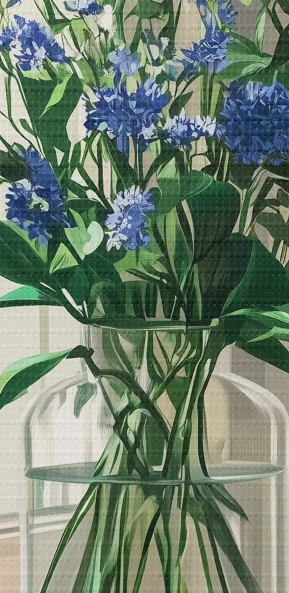 Selle lõuendi peenike niidipunus meenutab professionaalse kunstniku lõuendi pinda.