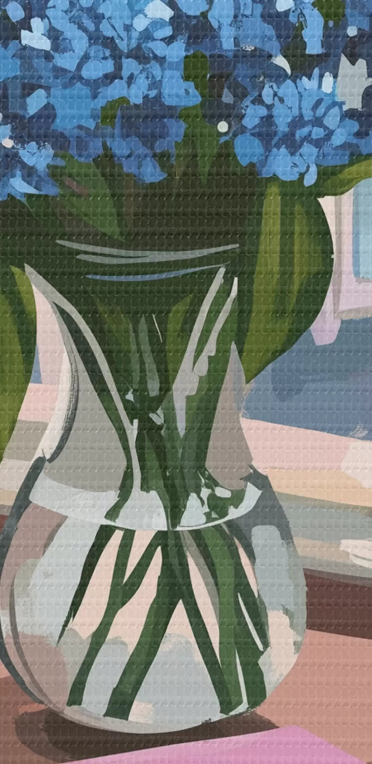 Selle lõuendi peenike niidipunus meenutab professionaalse kunstniku lõuendi pinda.