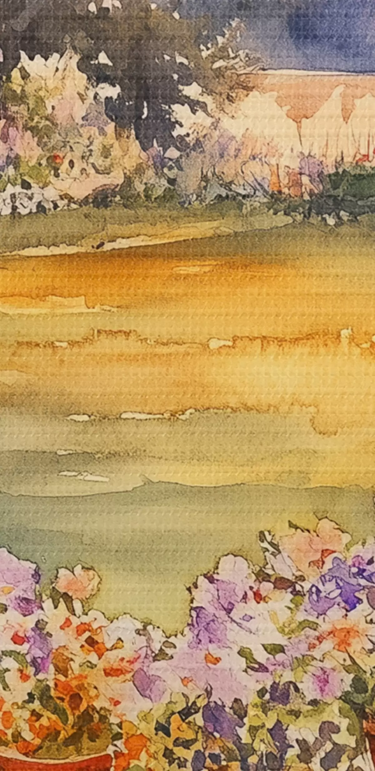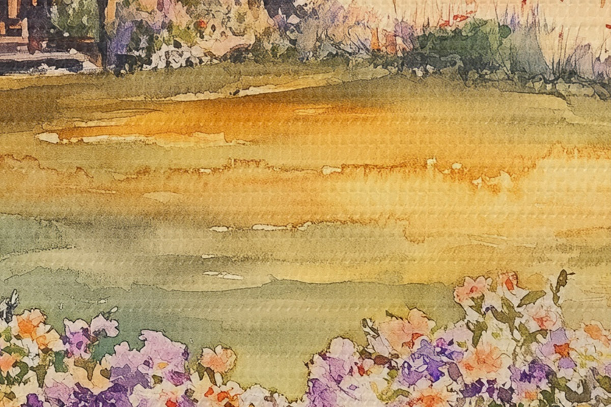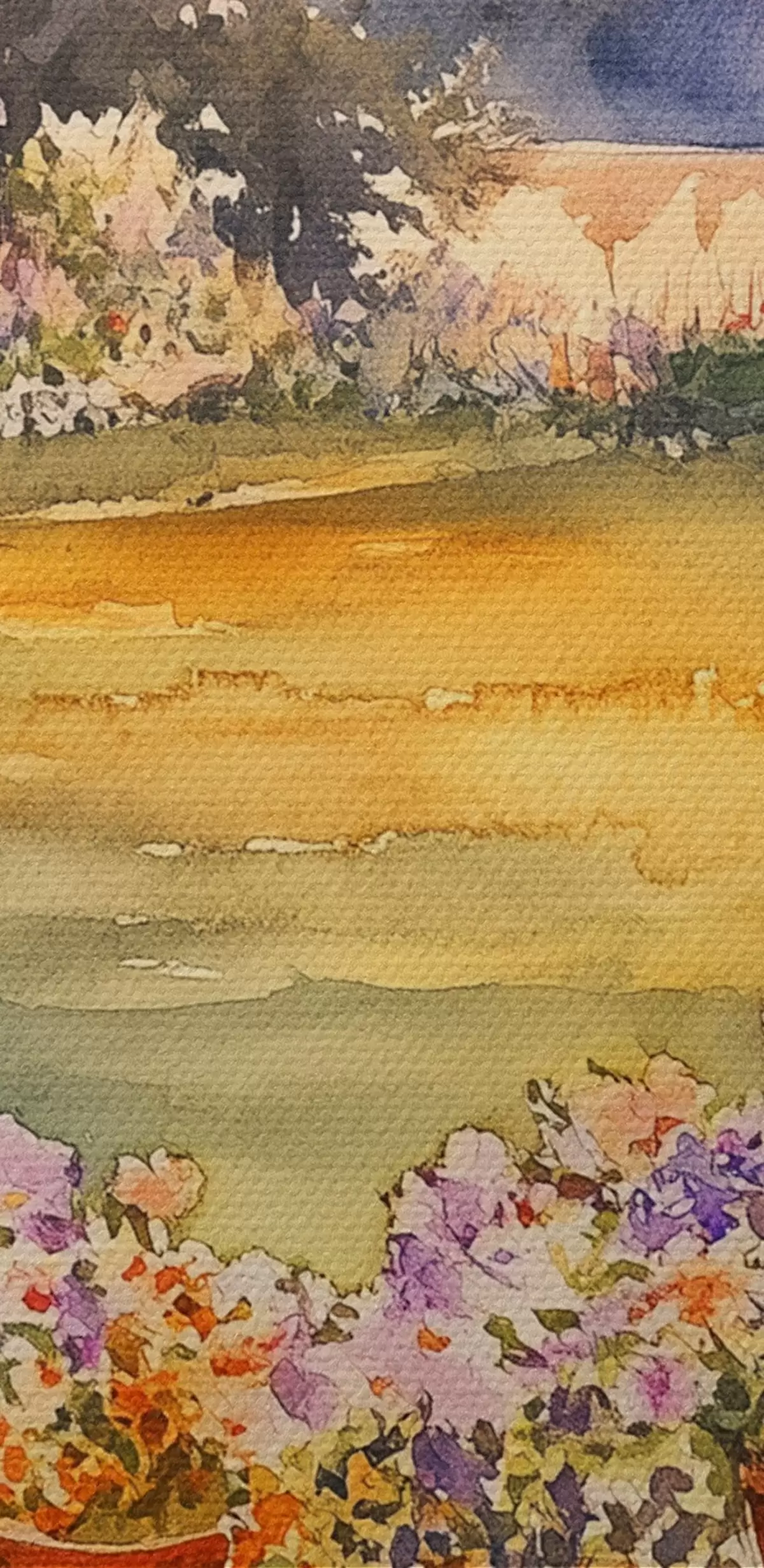 Pilt Lilled külaaias, päikeseloojangu värvid, akvarellstiilis Nr r44019