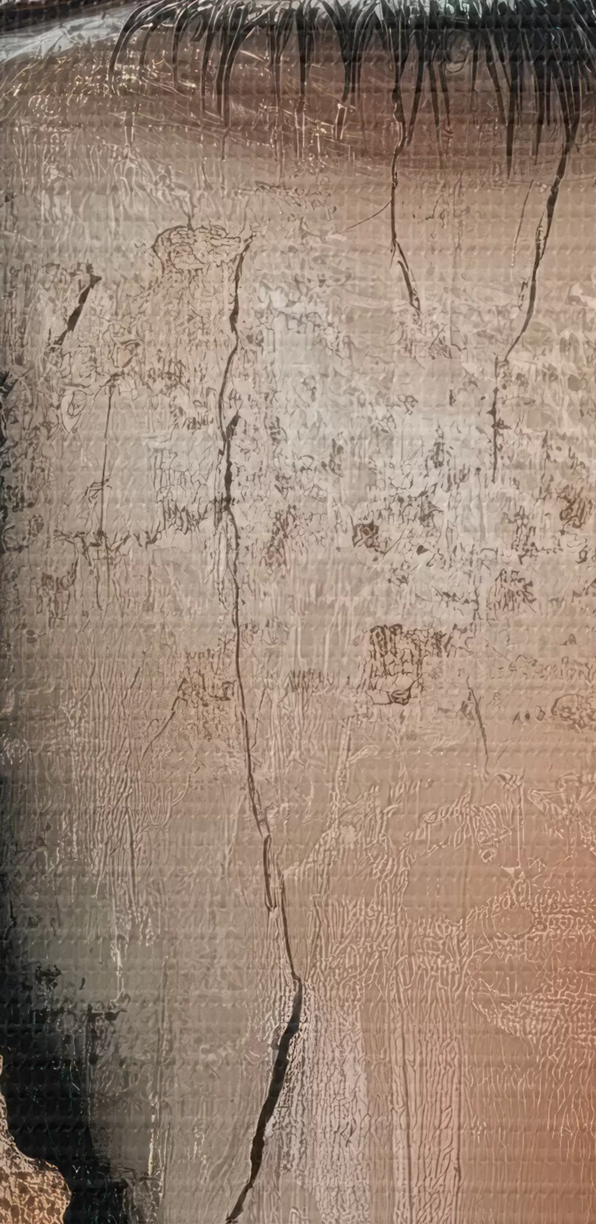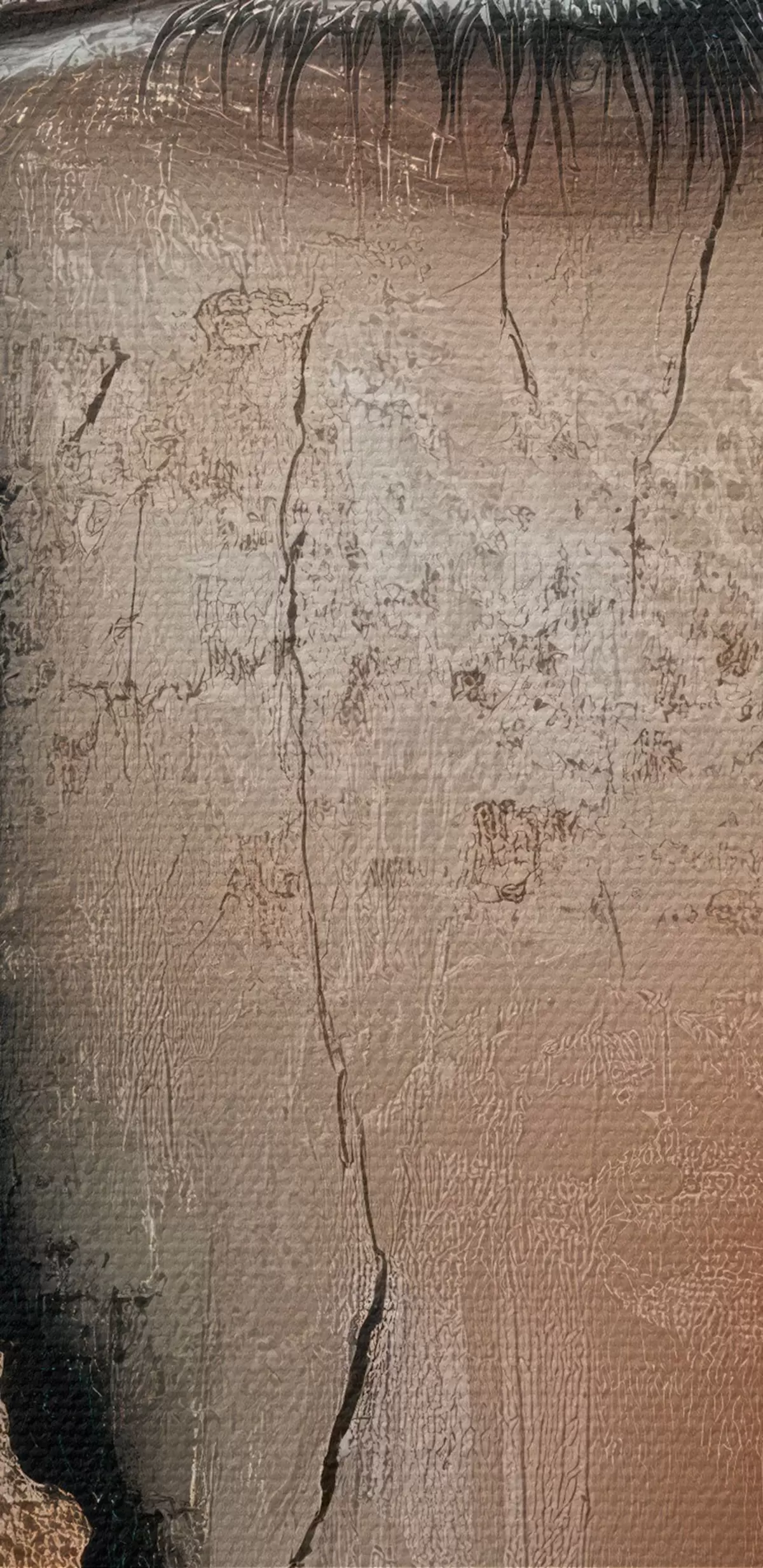 Selle lõuendi peenike niidipunus meenutab professionaalse kunstniku lõuendi pinda.