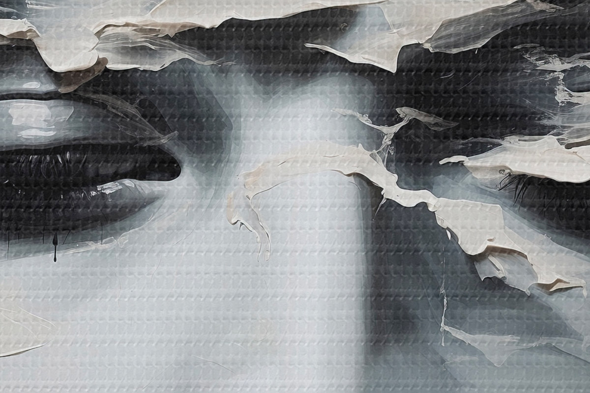 Selle lõuendi peenike niidipunus meenutab professionaalse kunstniku lõuendi pinda.