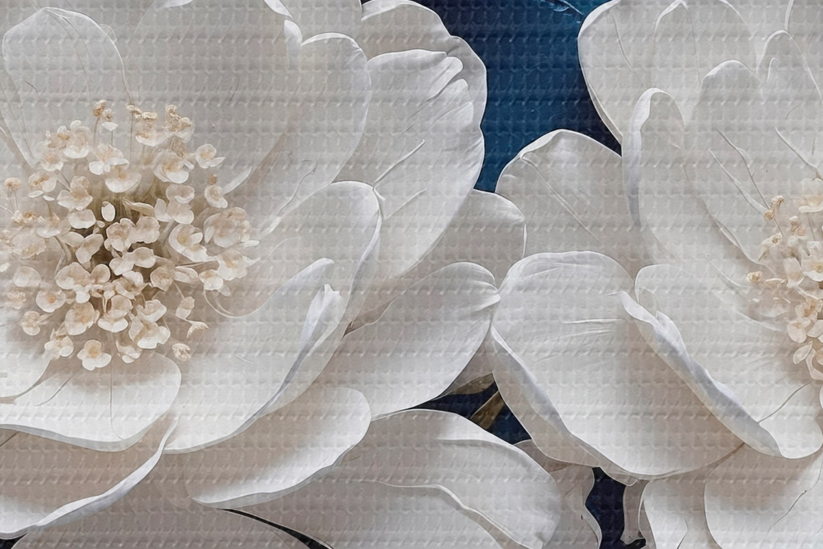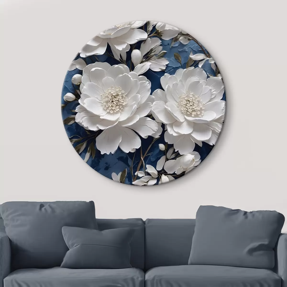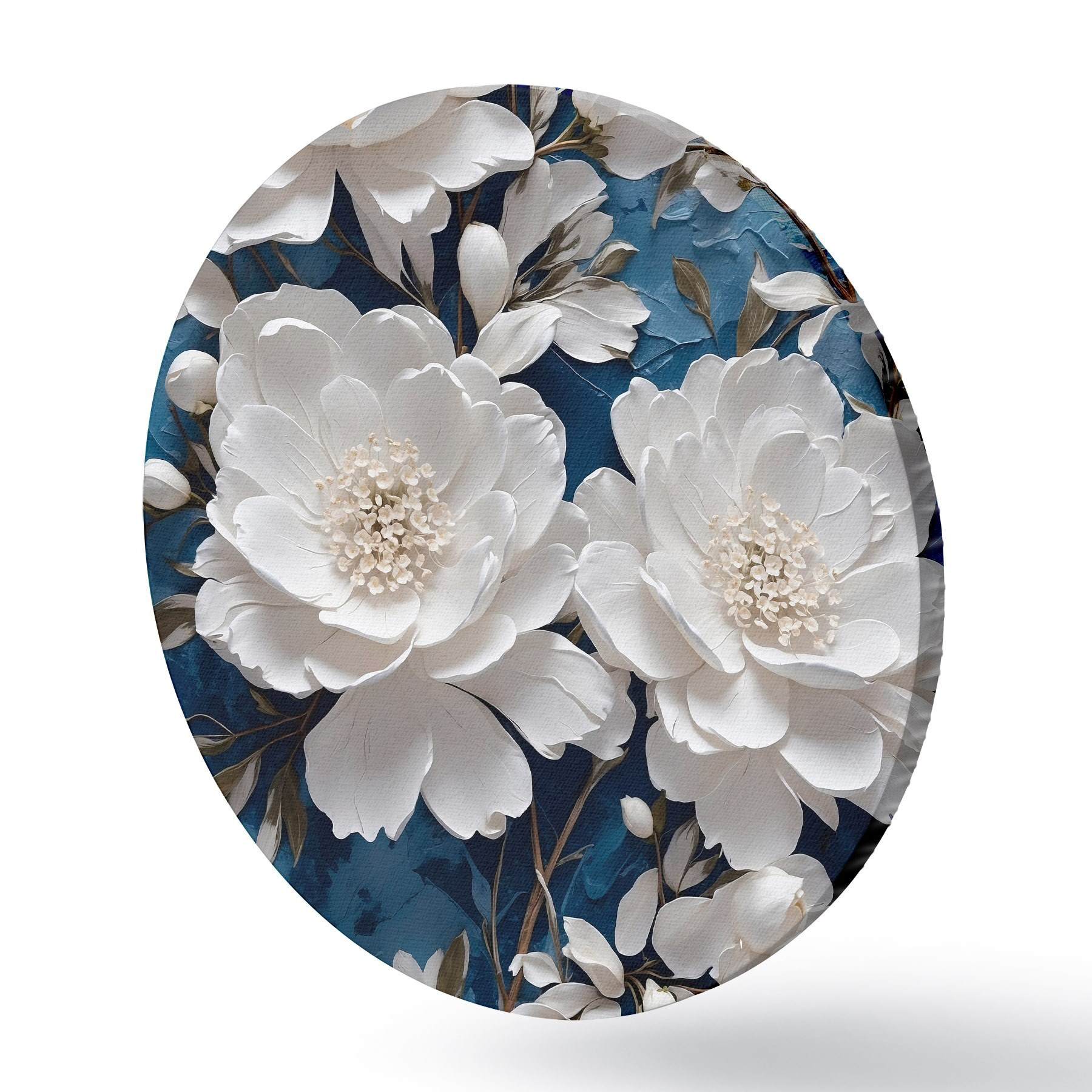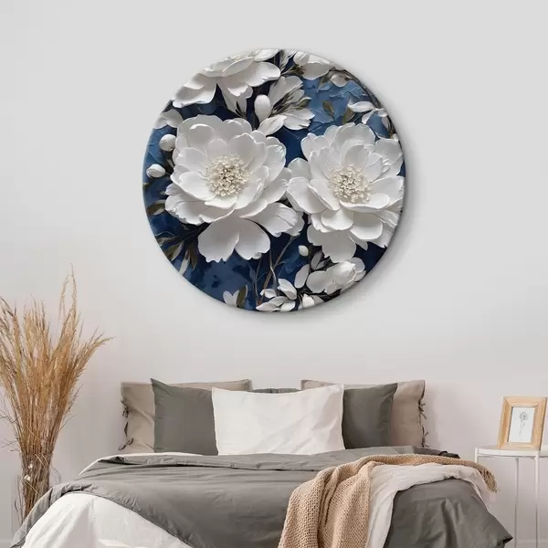 Pilt Valged lilled sinisel õlimaalil taustal Nr r44091