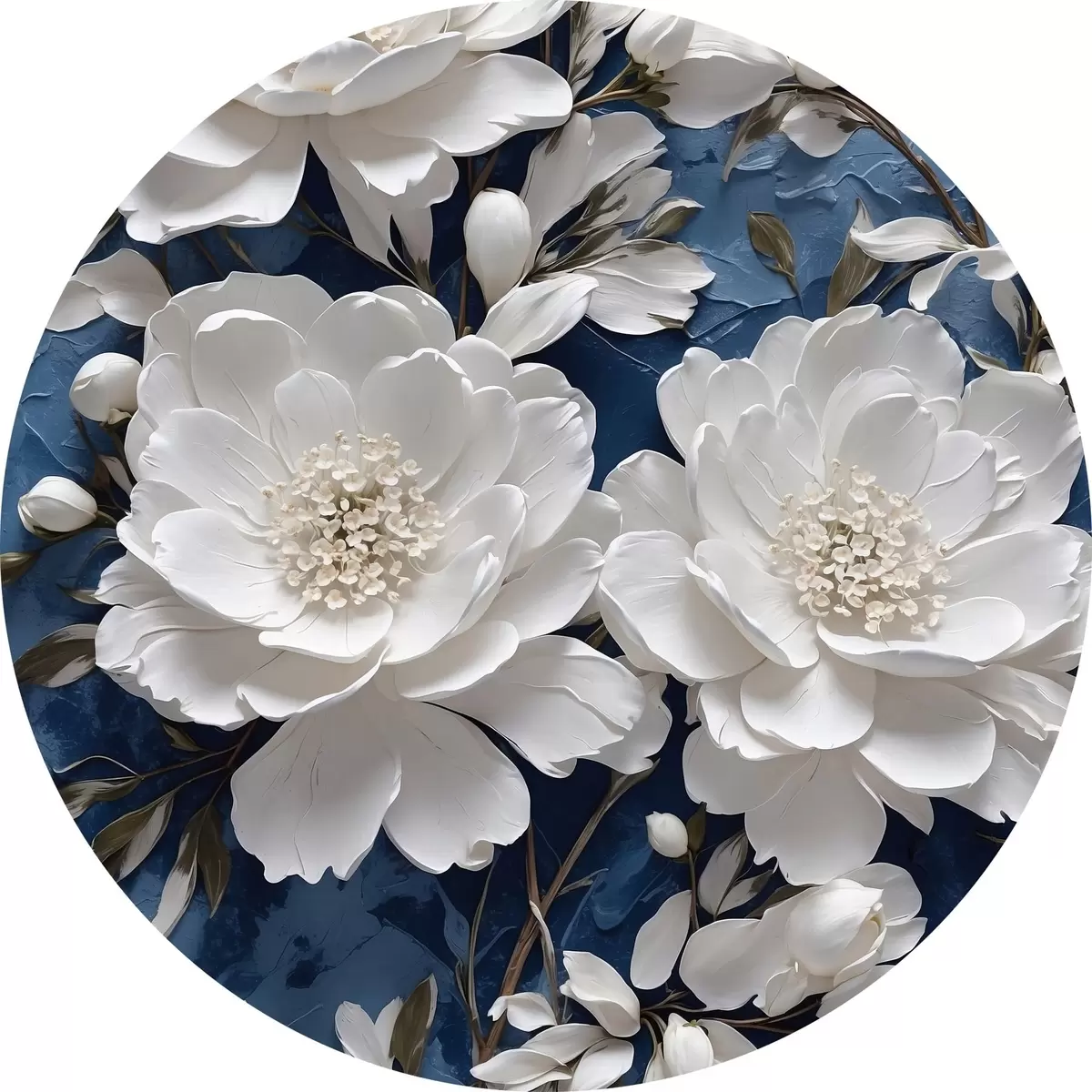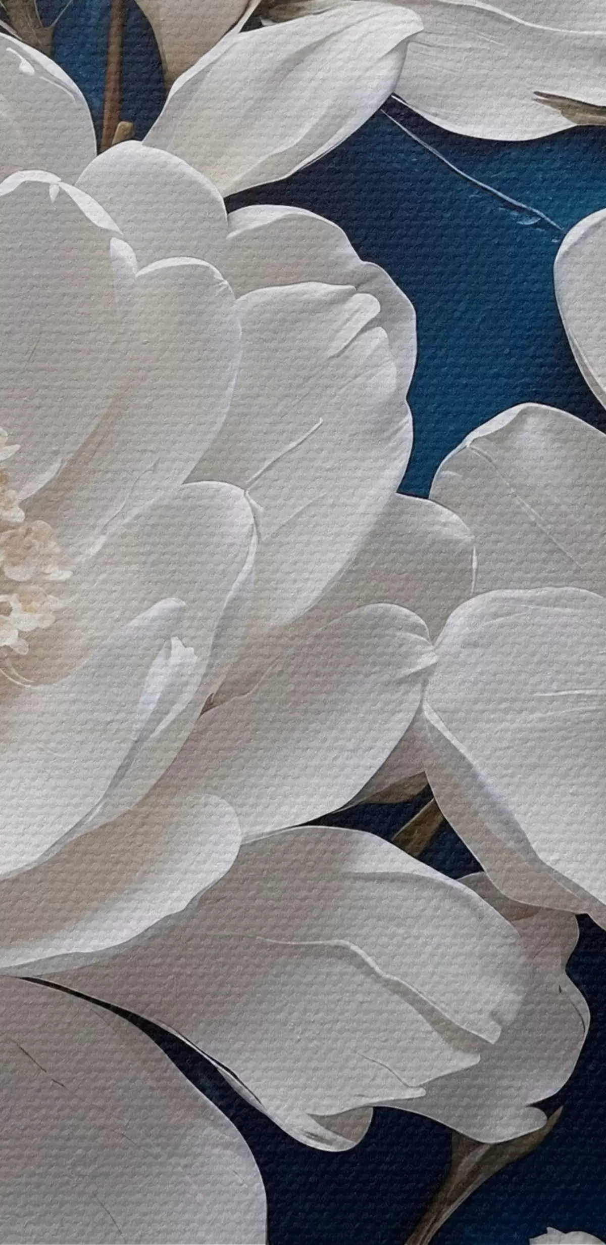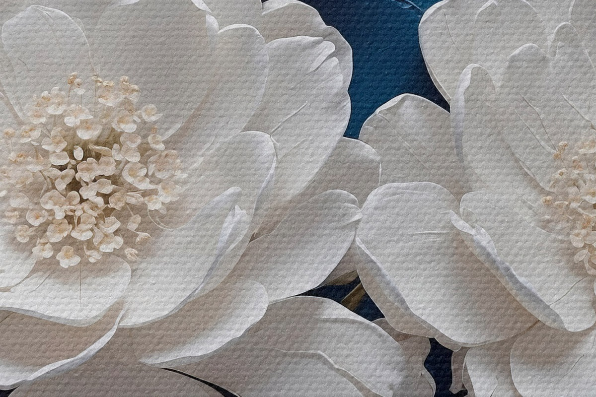 Pilt Valged lilled sinisel õlimaalil taustal Nr r44091