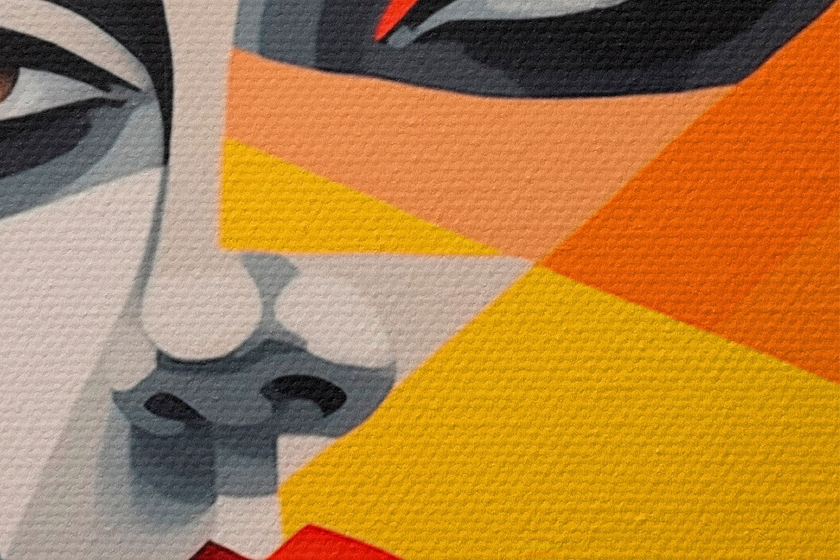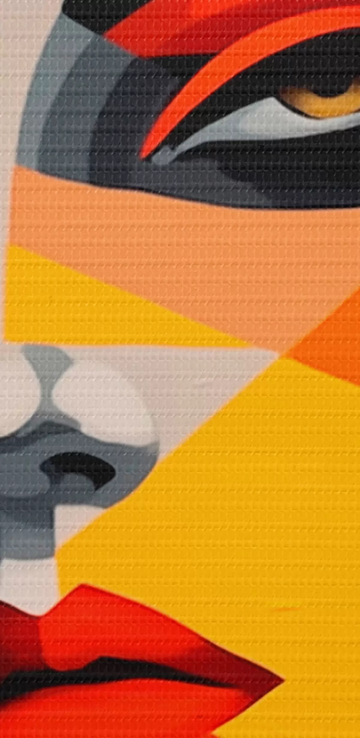 Selle lõuendi peenike niidipunus meenutab professionaalse kunstniku lõuendi pinda.