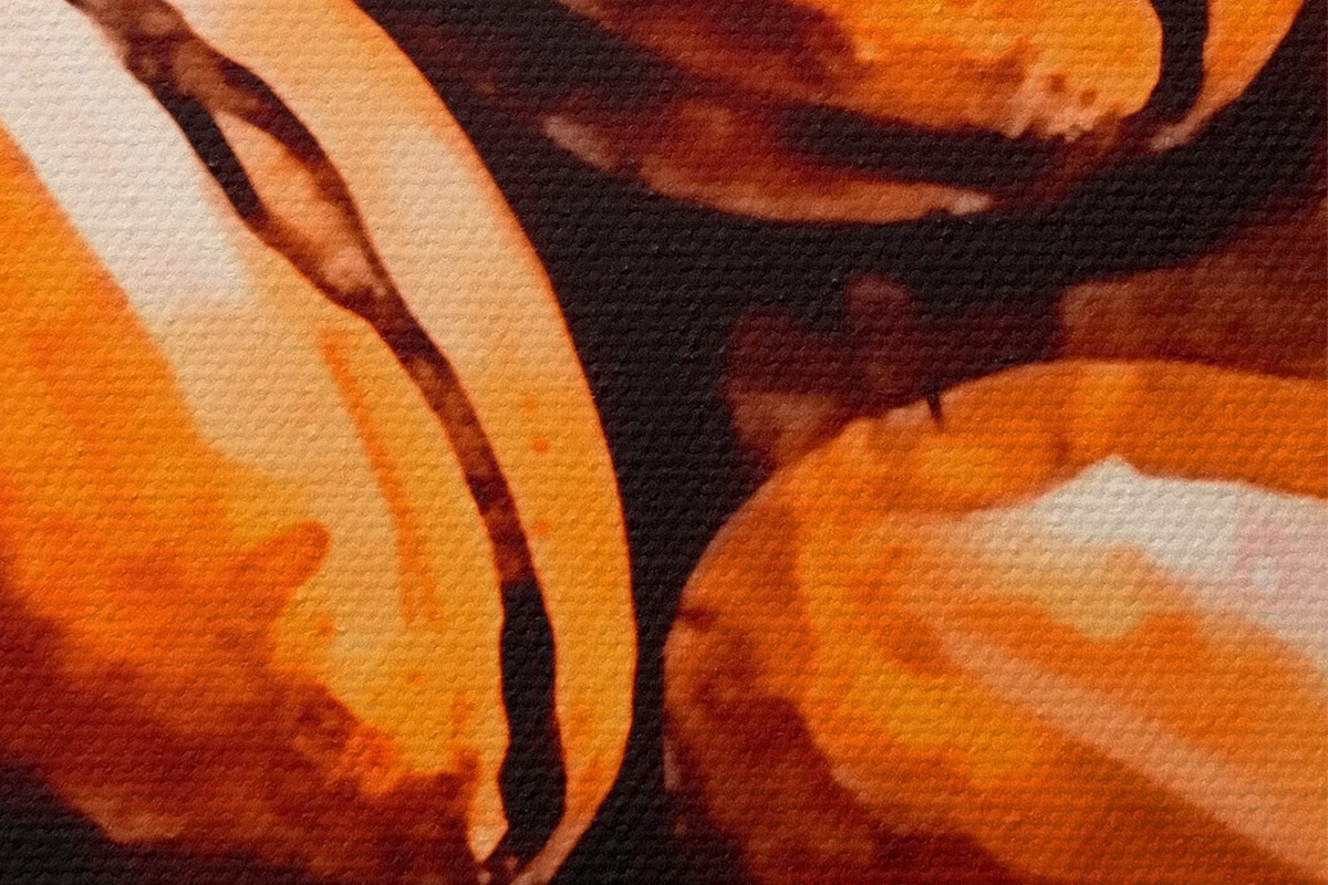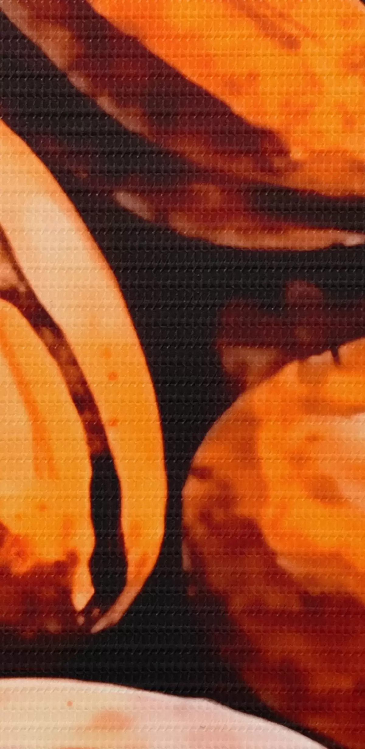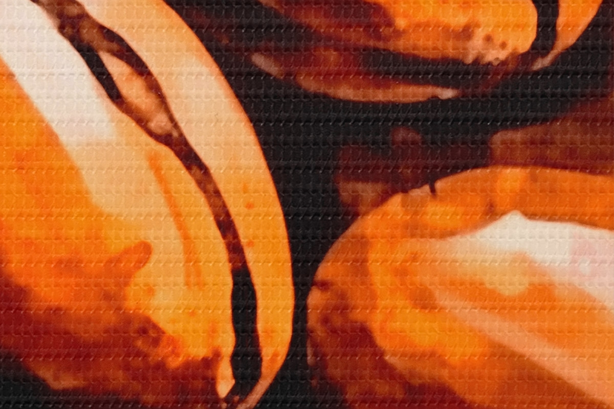 Selle lõuendi peenike niidipunus meenutab professionaalse kunstniku lõuendi pinda.