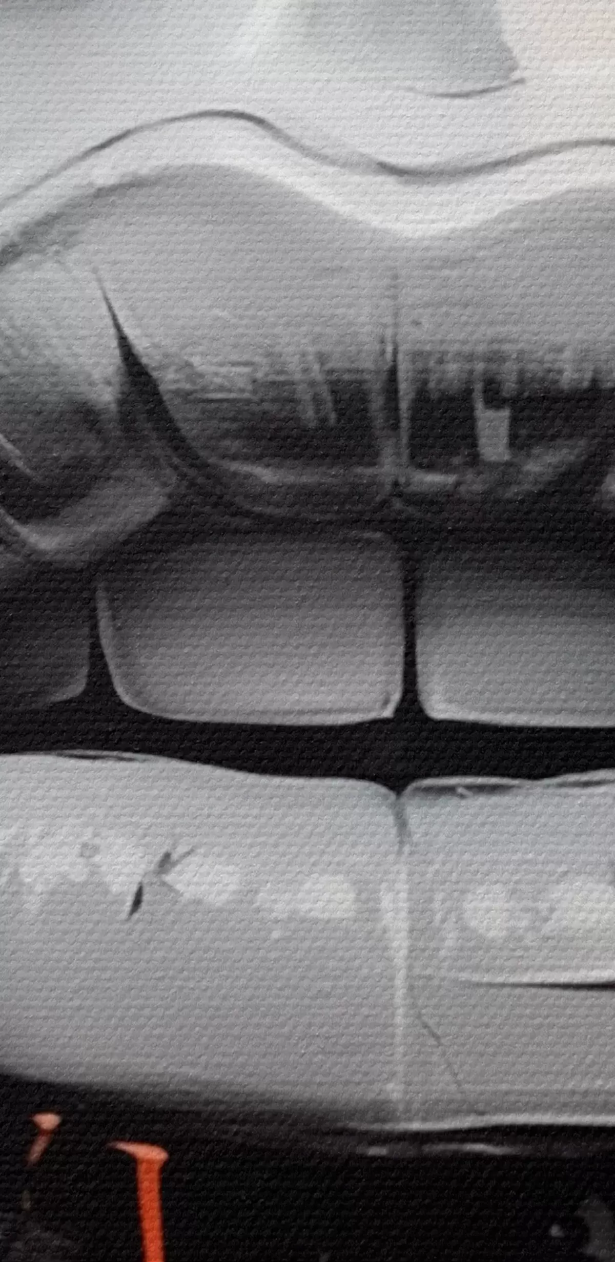 Selle lõuendi peenike niidipunus meenutab professionaalse kunstniku lõuendi pinda.