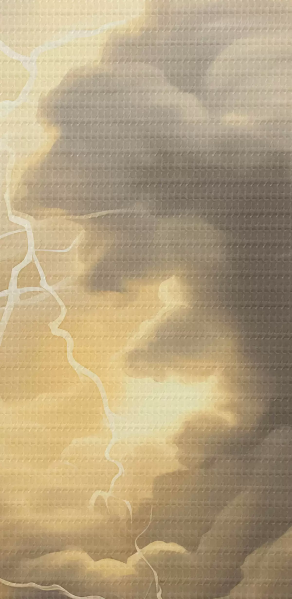 Selle lõuendi peenike niidipunus meenutab professionaalse kunstniku lõuendi pinda.