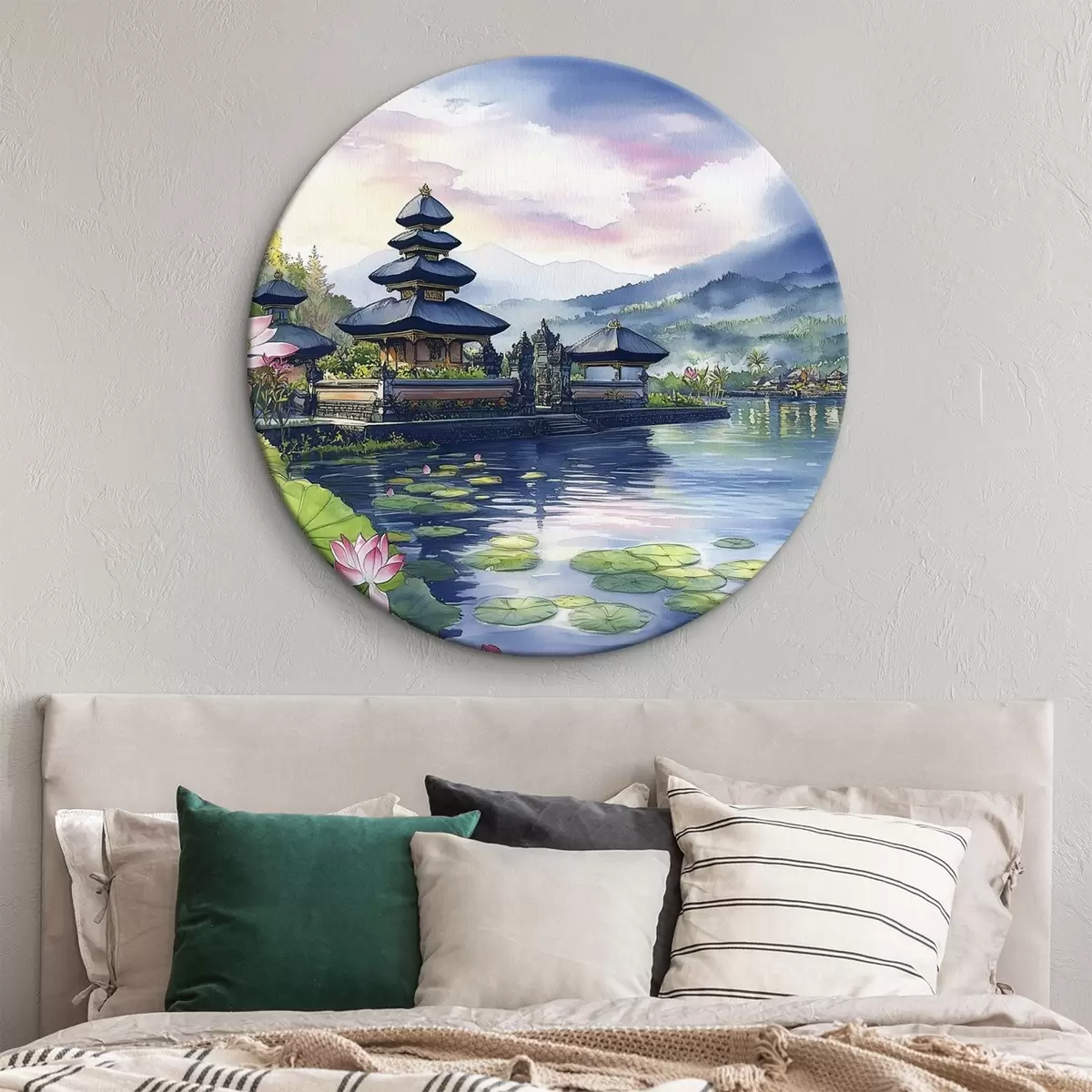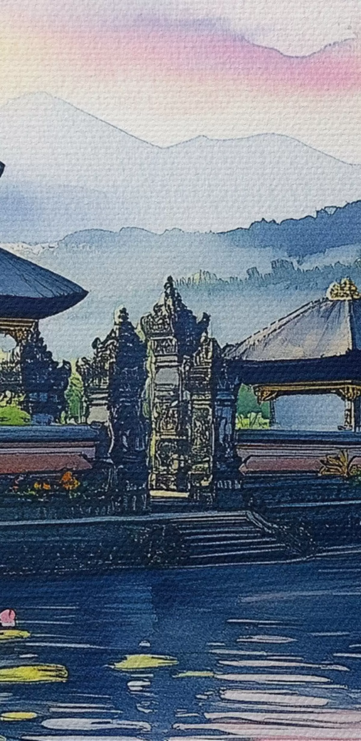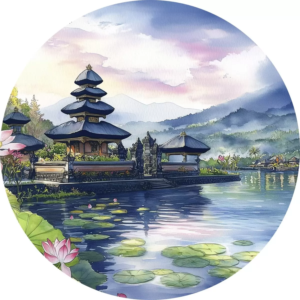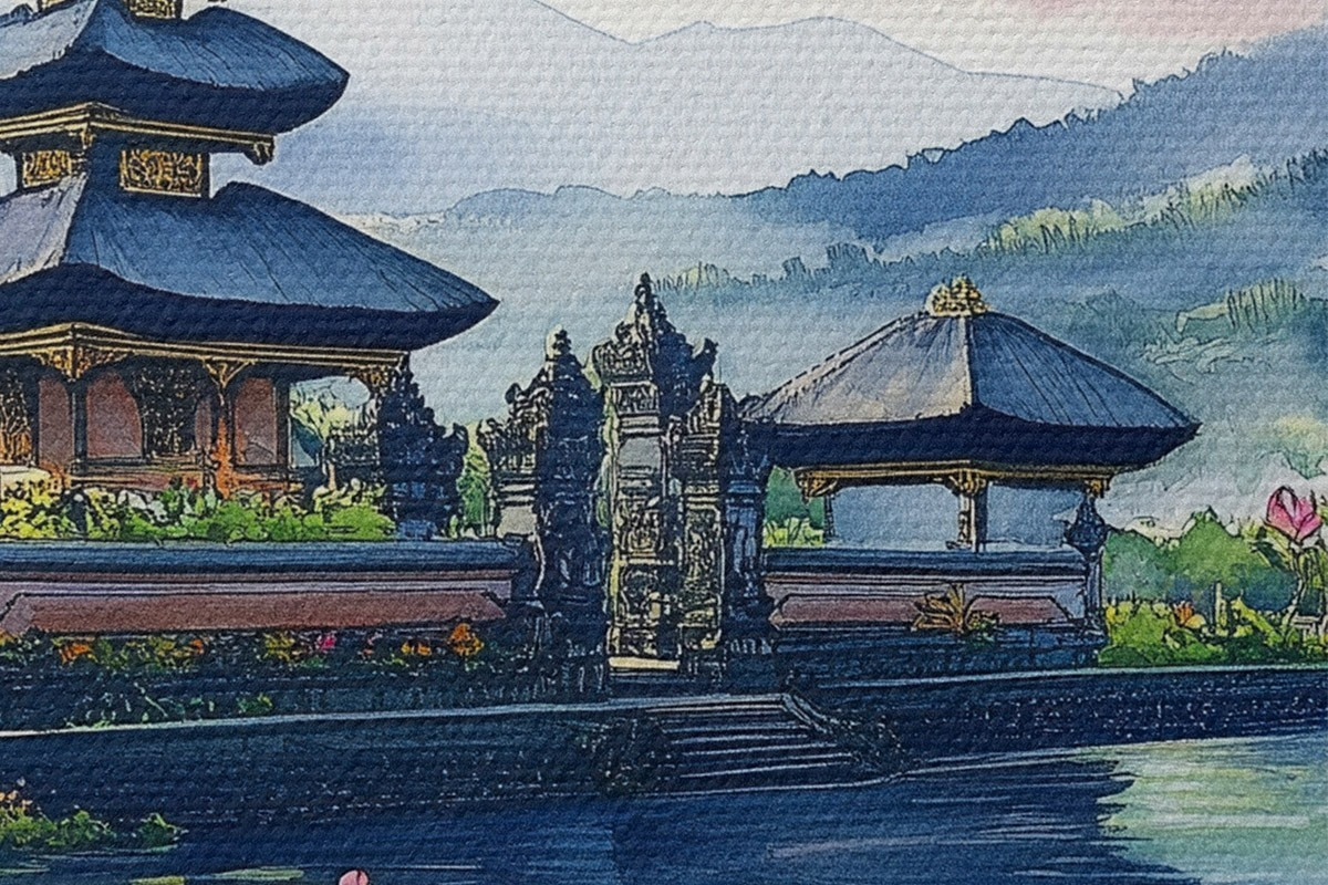Pilt Indoneesia saar, tempel, budism, troopiline loodus, akvarellstiil Nr r44148