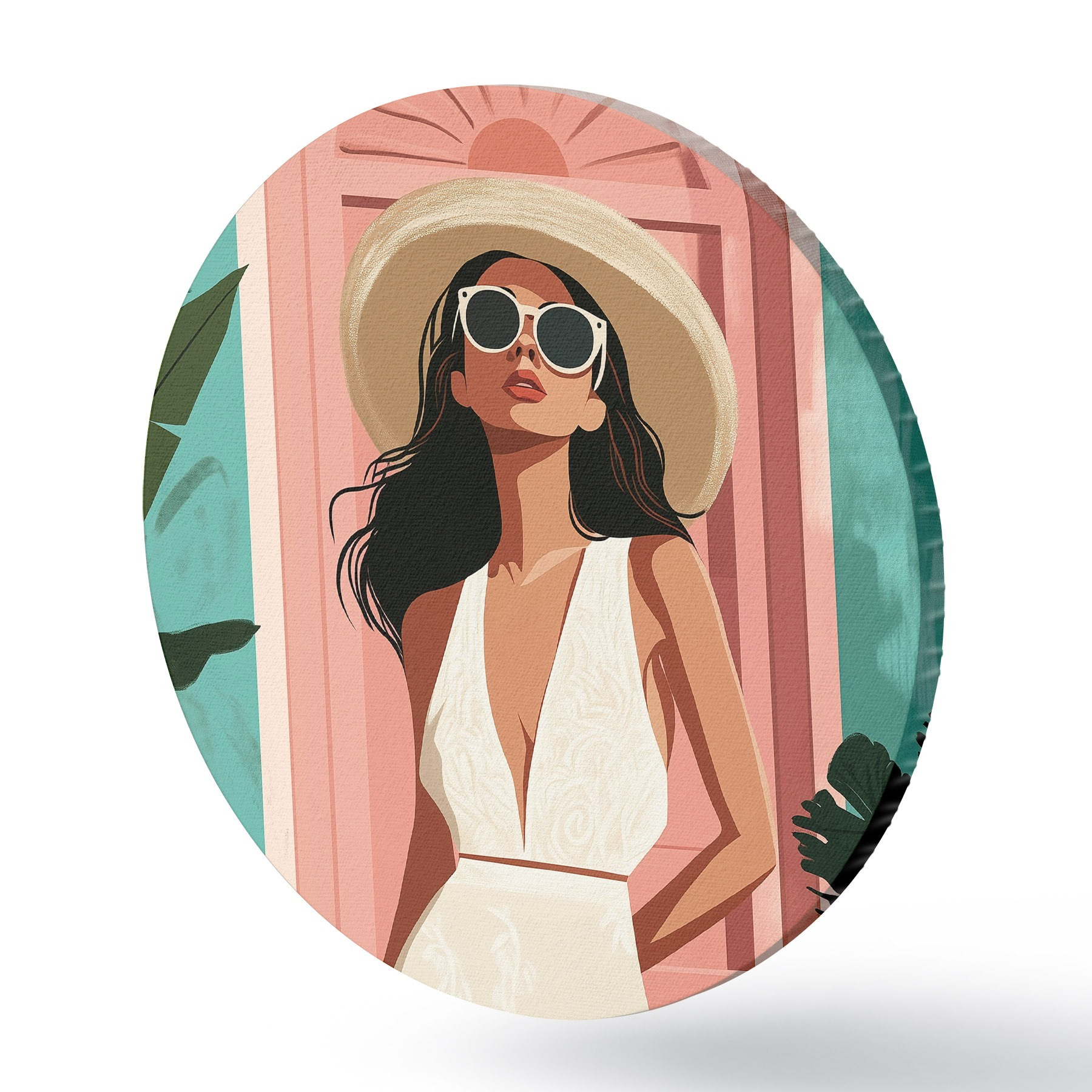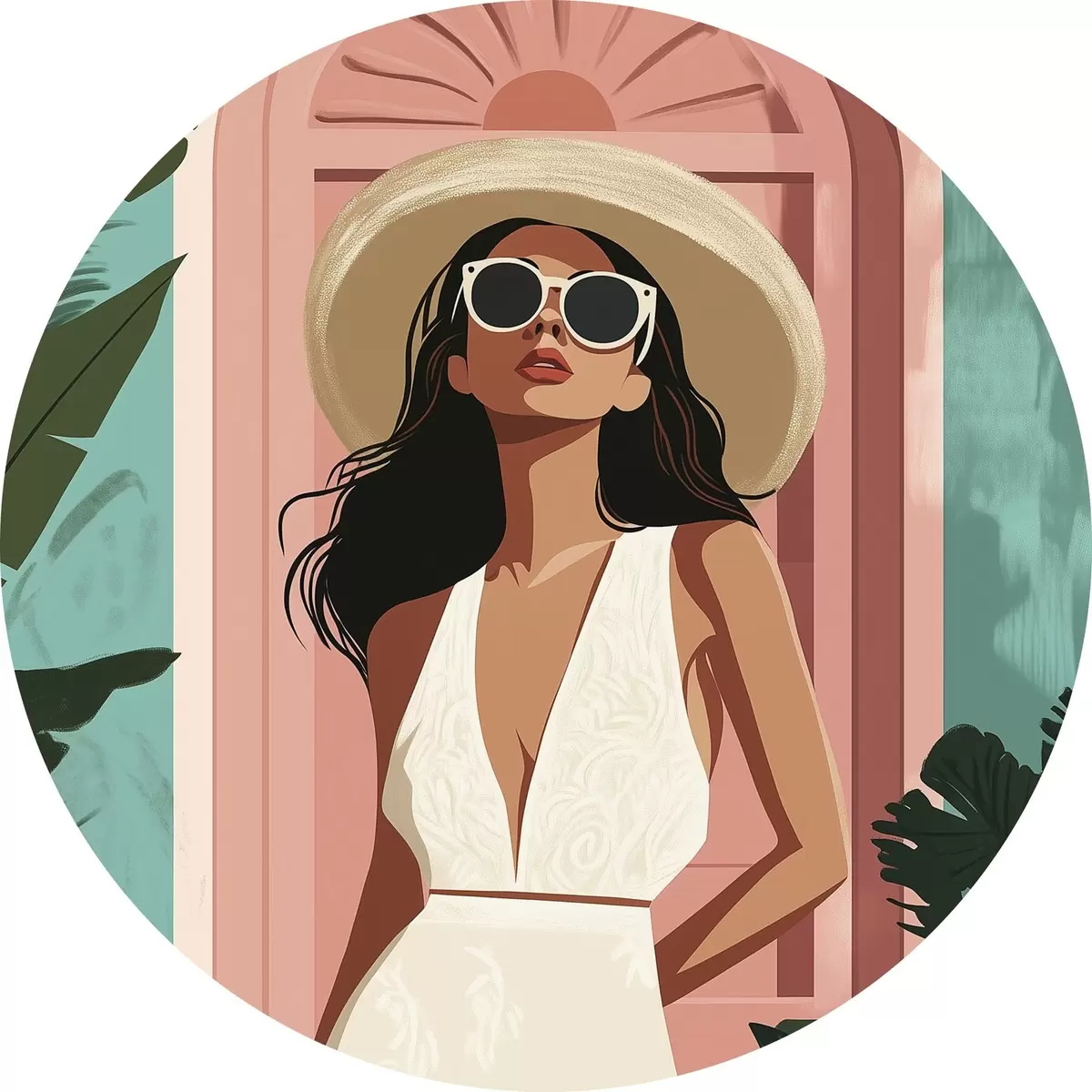 Pilt Naine päikeseprillidega ja mütsiga, troopiline loodus, arhitektuur Nr r44152