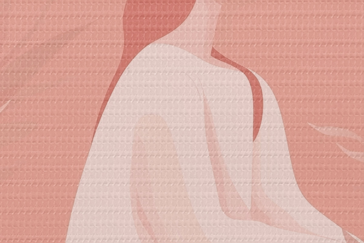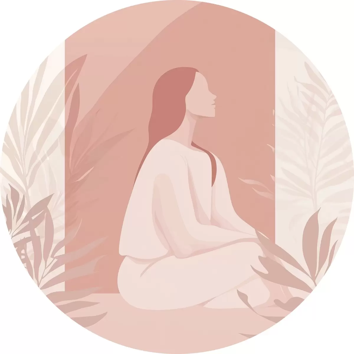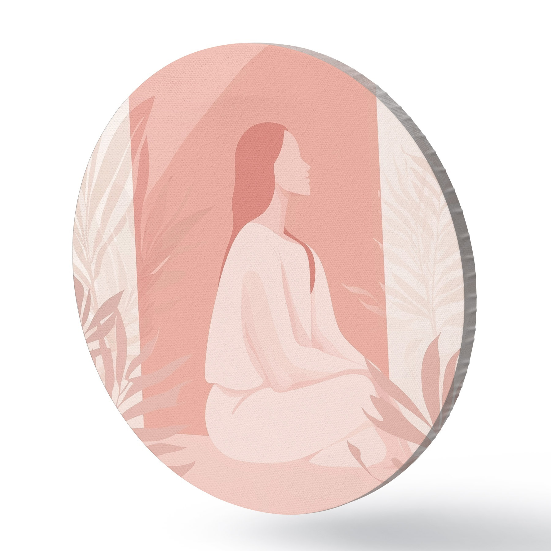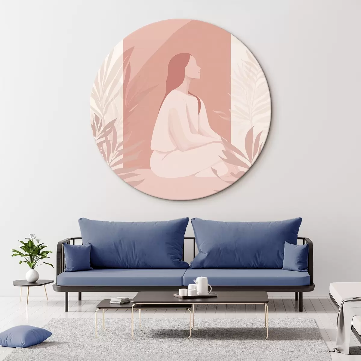 Pilt Naine mediteerimas, lame stiil, troopilised taimed, roosa värvid Nr r44154