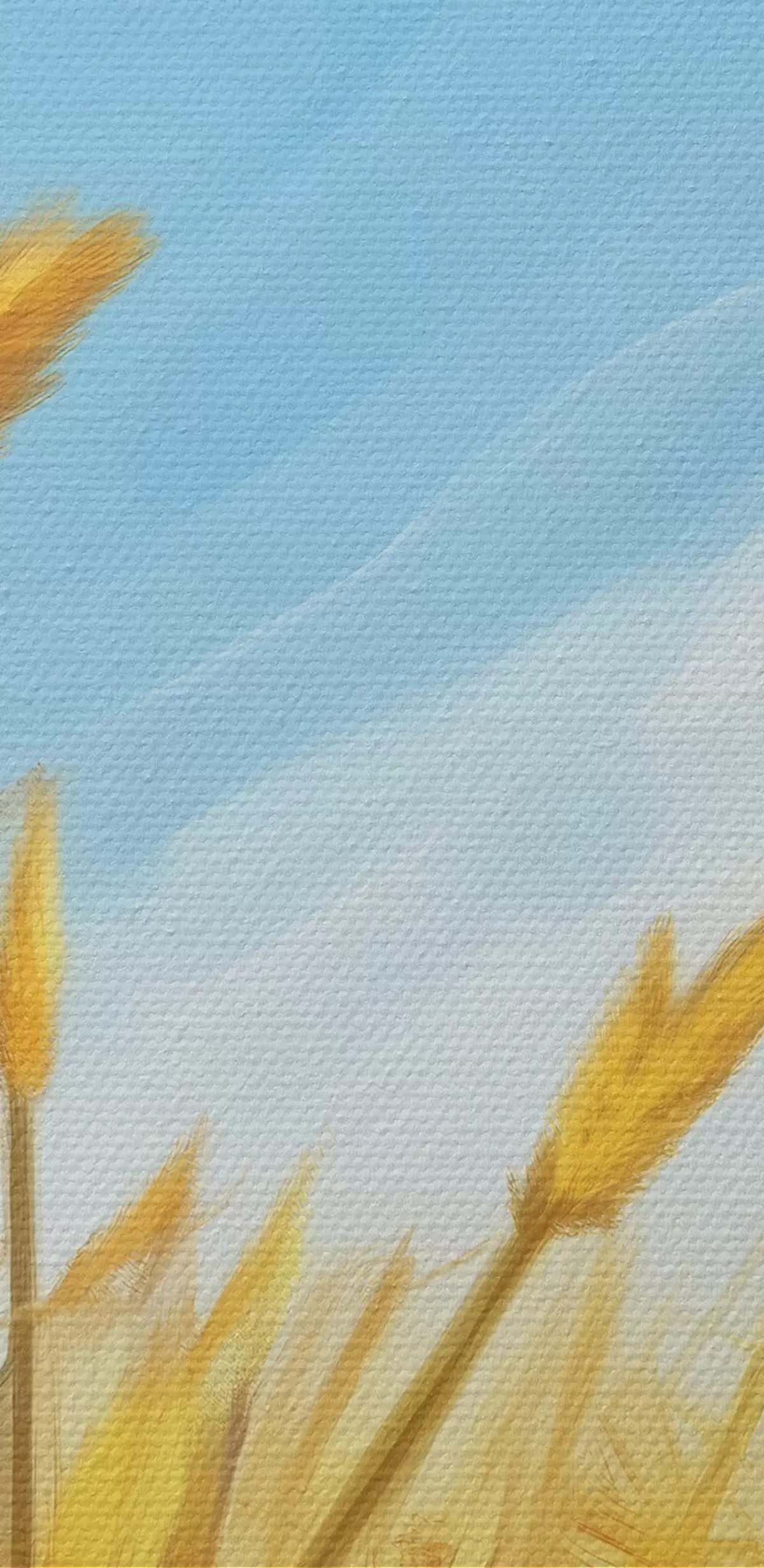 Selle lõuendi peenike niidipunus meenutab professionaalse kunstniku lõuendi pinda.