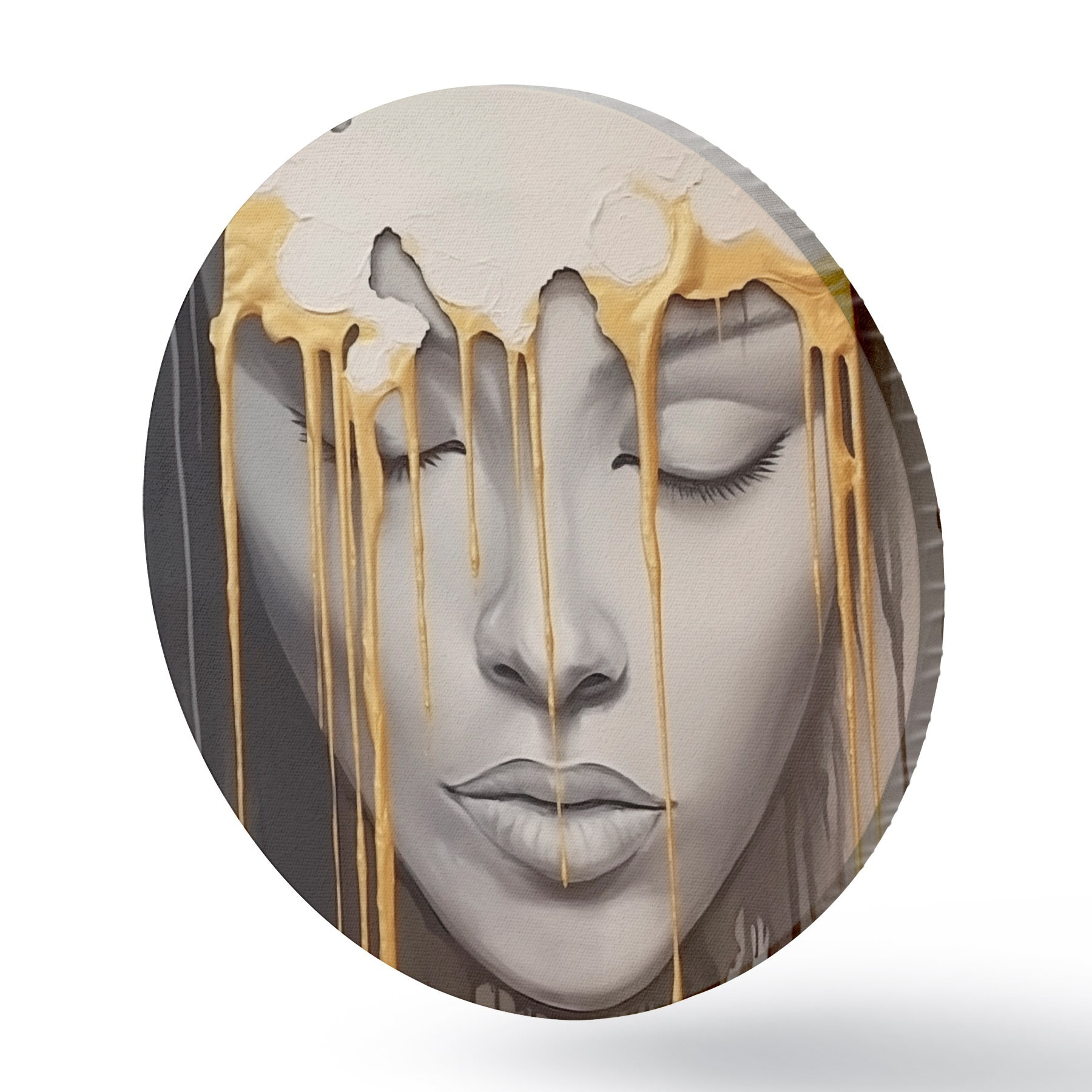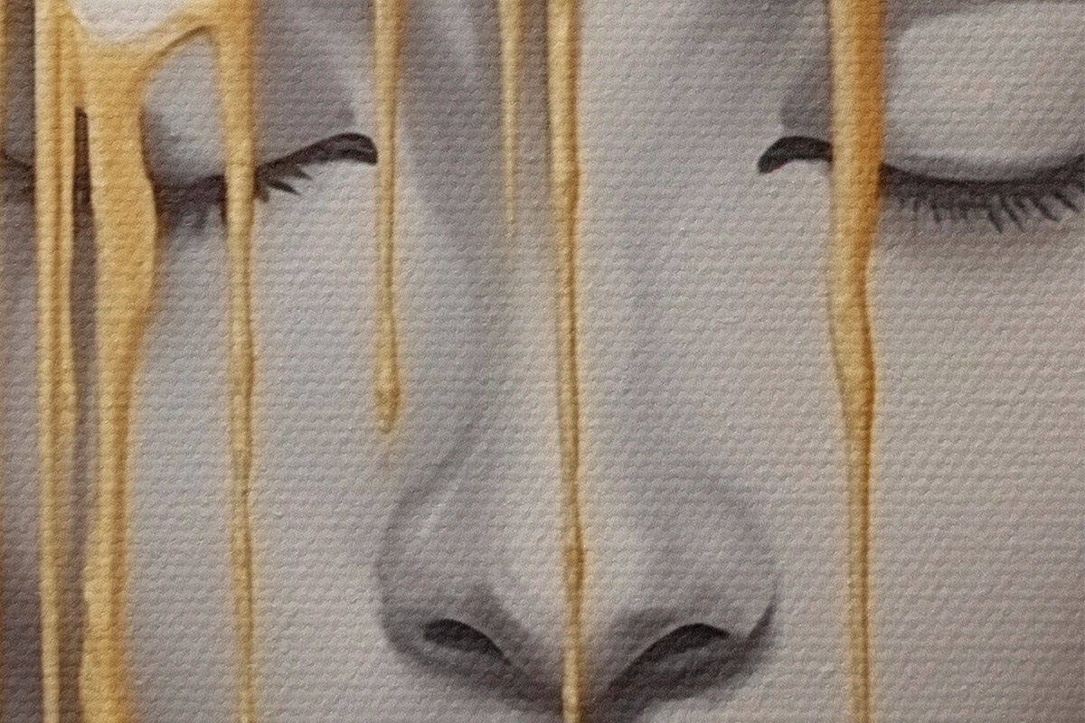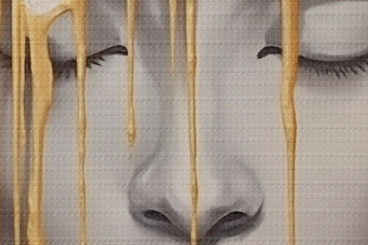 Selle lõuendi peenike niidipunus meenutab professionaalse kunstniku lõuendi pinda.