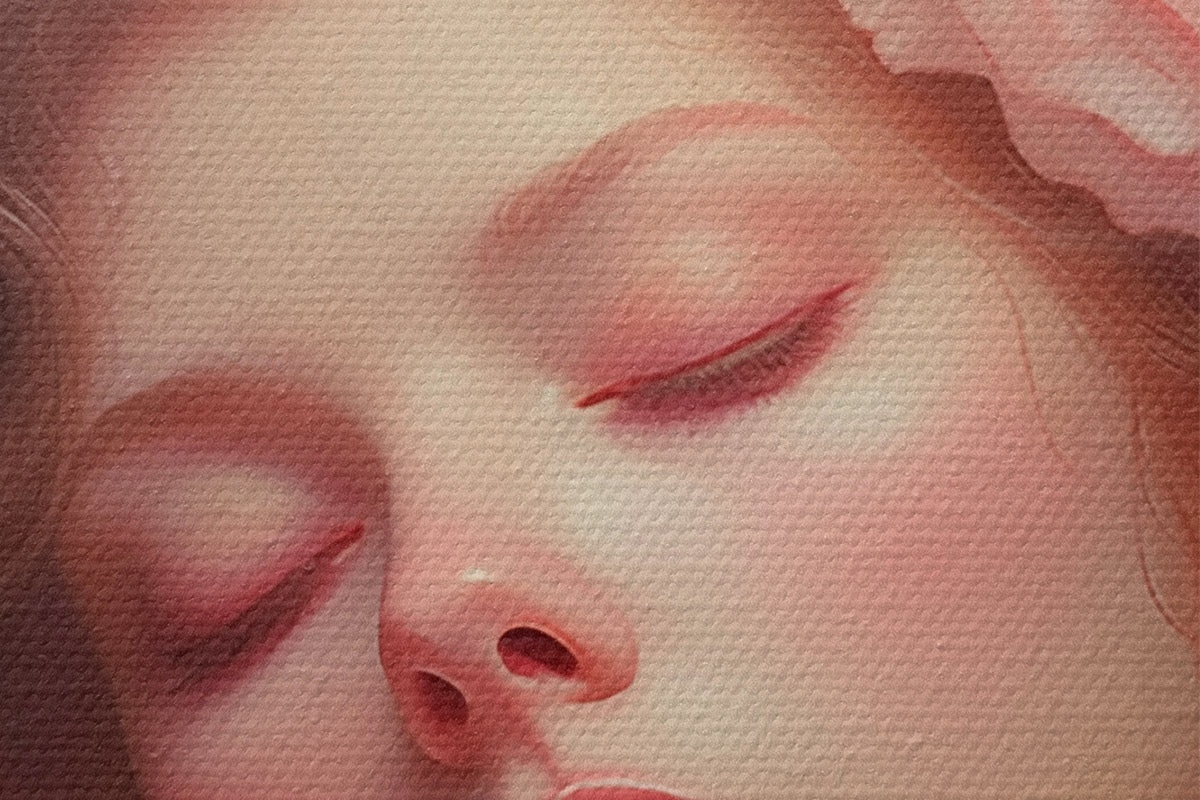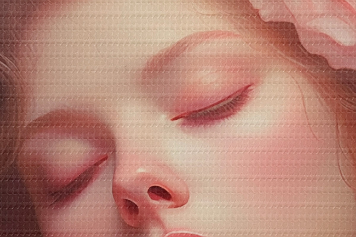 Selle lõuendi peenike niidipunus meenutab professionaalse kunstniku lõuendi pinda.