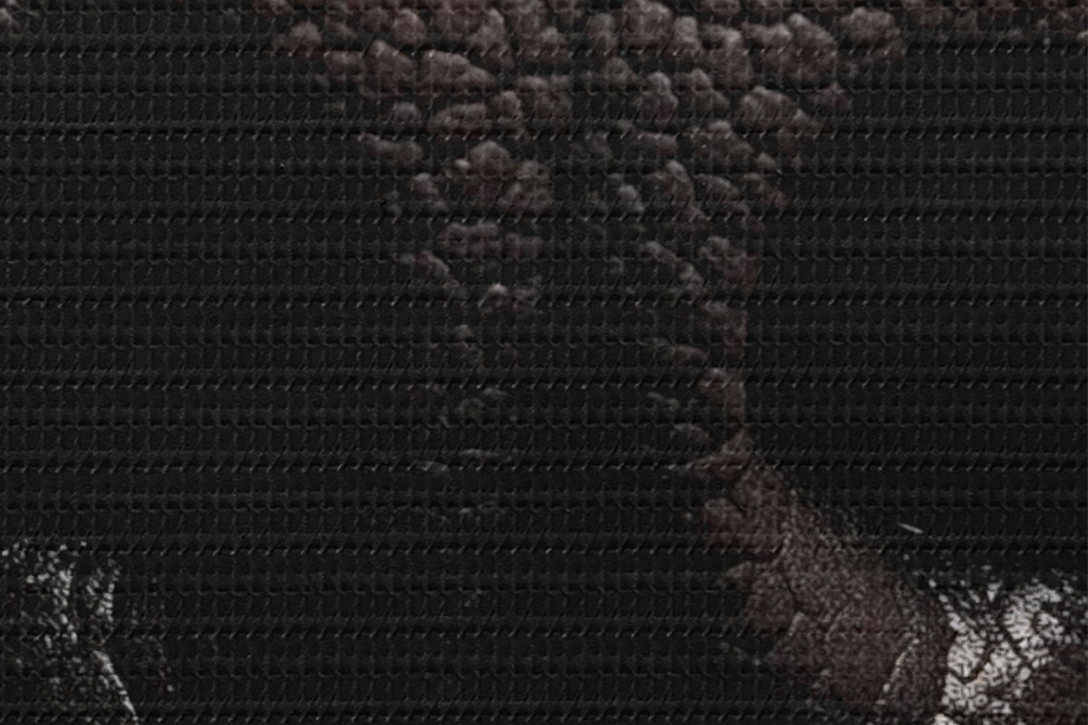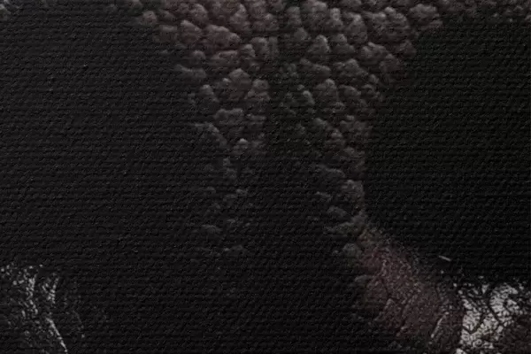 Selle lõuendi peenike niidipunus meenutab professionaalse kunstniku lõuendi pinda.