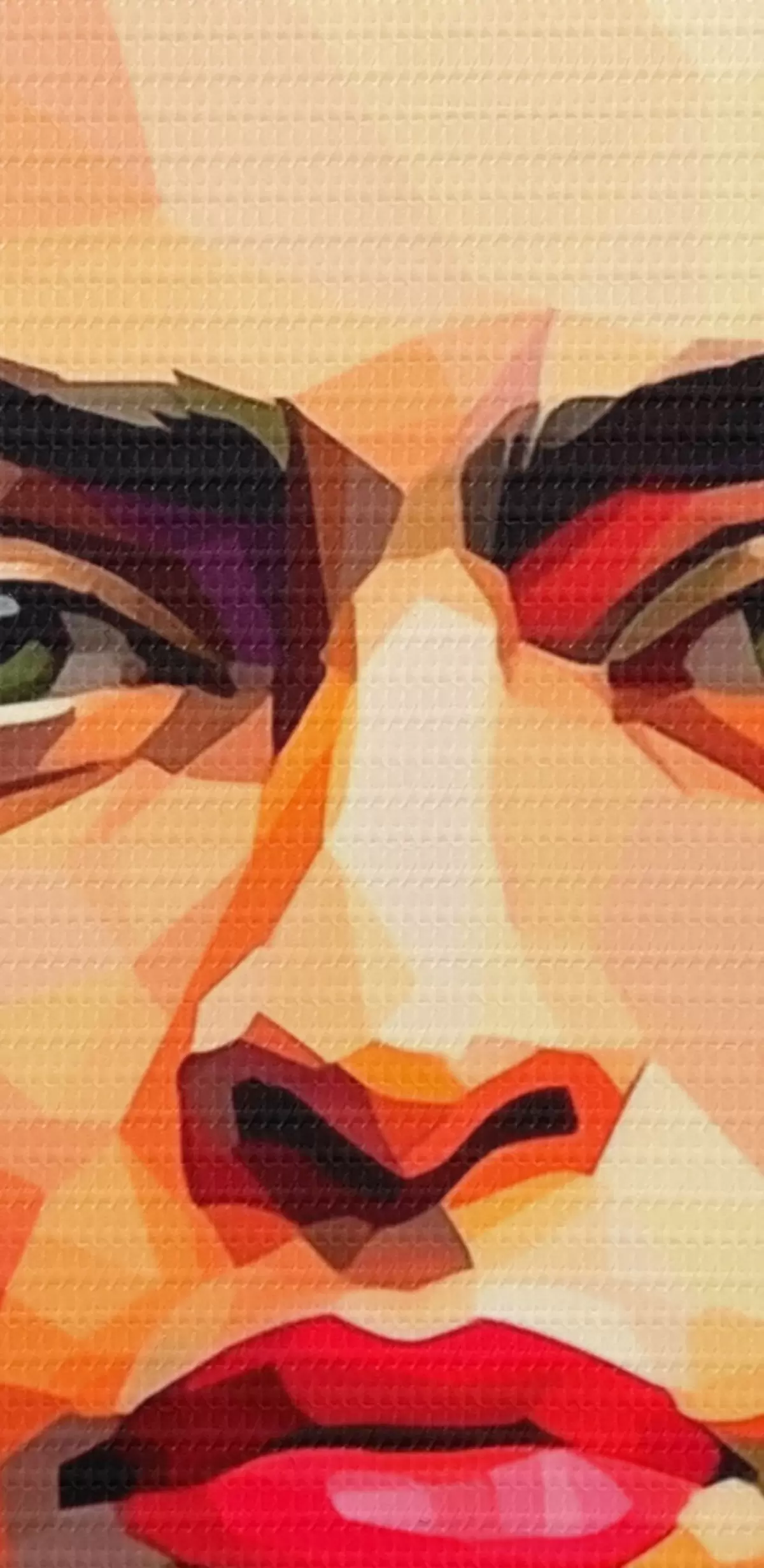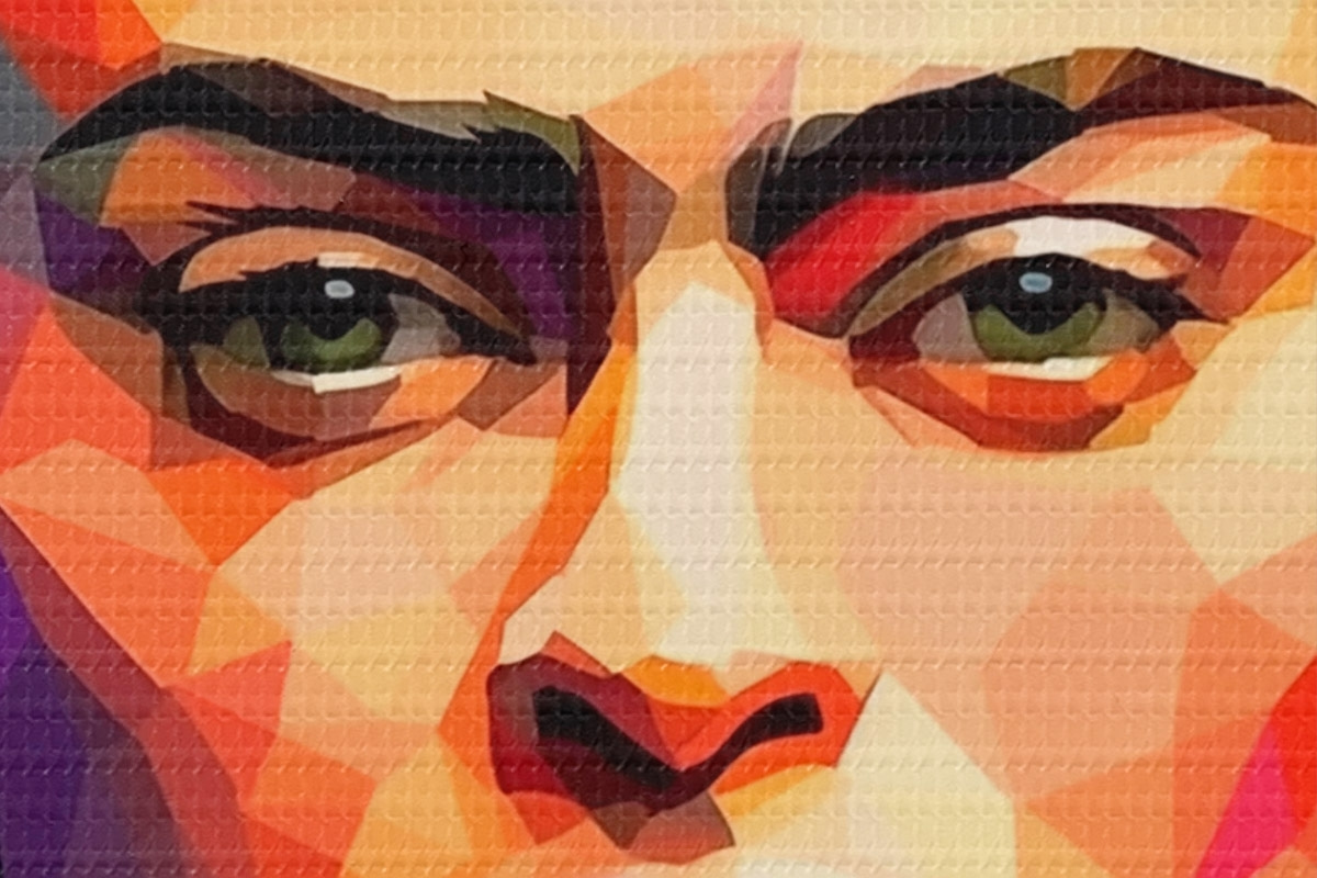Selle lõuendi peenike niidipunus meenutab professionaalse kunstniku lõuendi pinda.