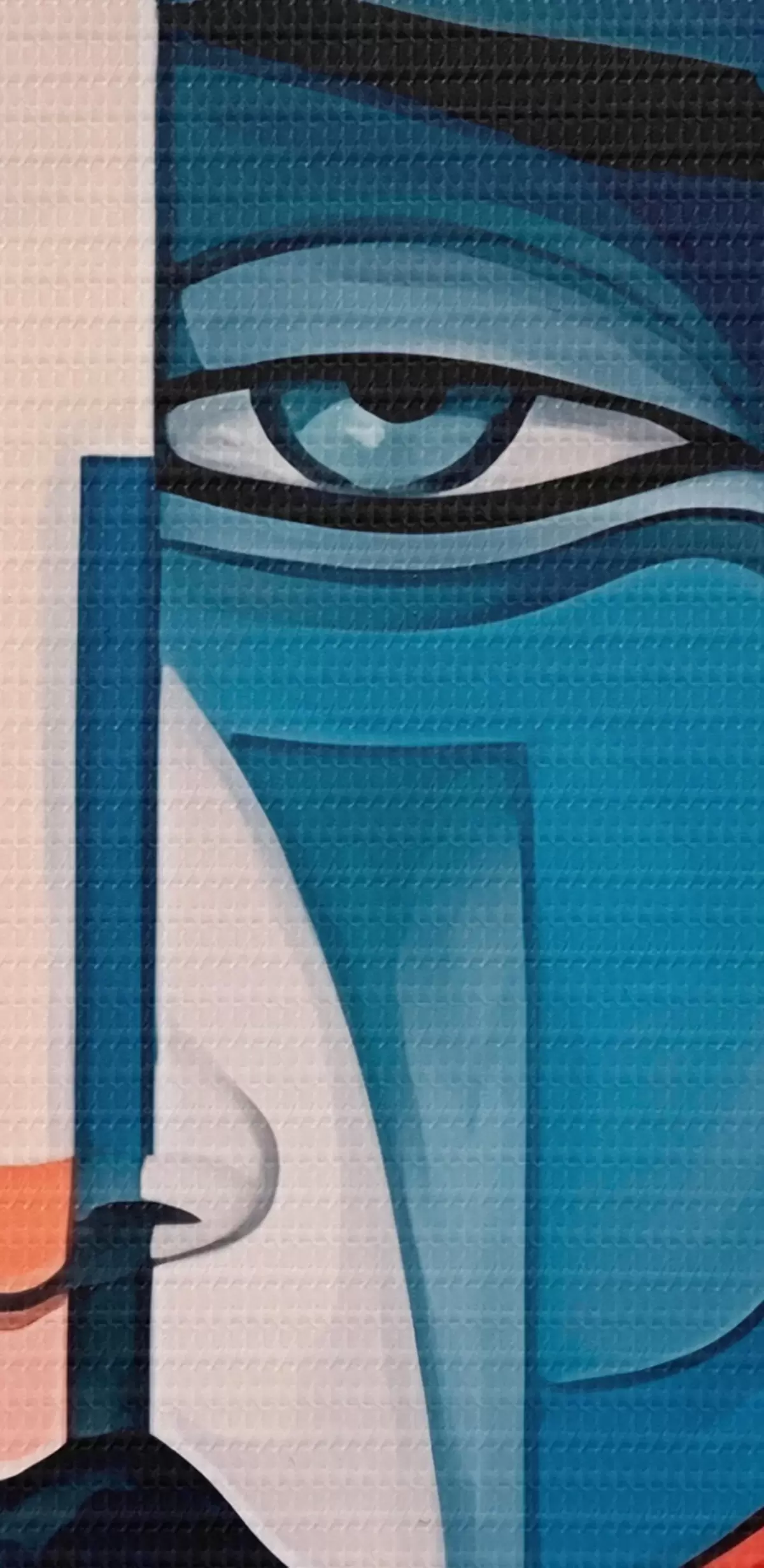 Selle lõuendi peenike niidipunus meenutab professionaalse kunstniku lõuendi pinda.