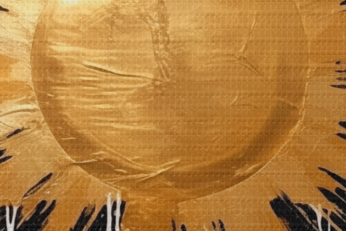 Selle lõuendi peenike niidipunus meenutab professionaalse kunstniku lõuendi pinda.
