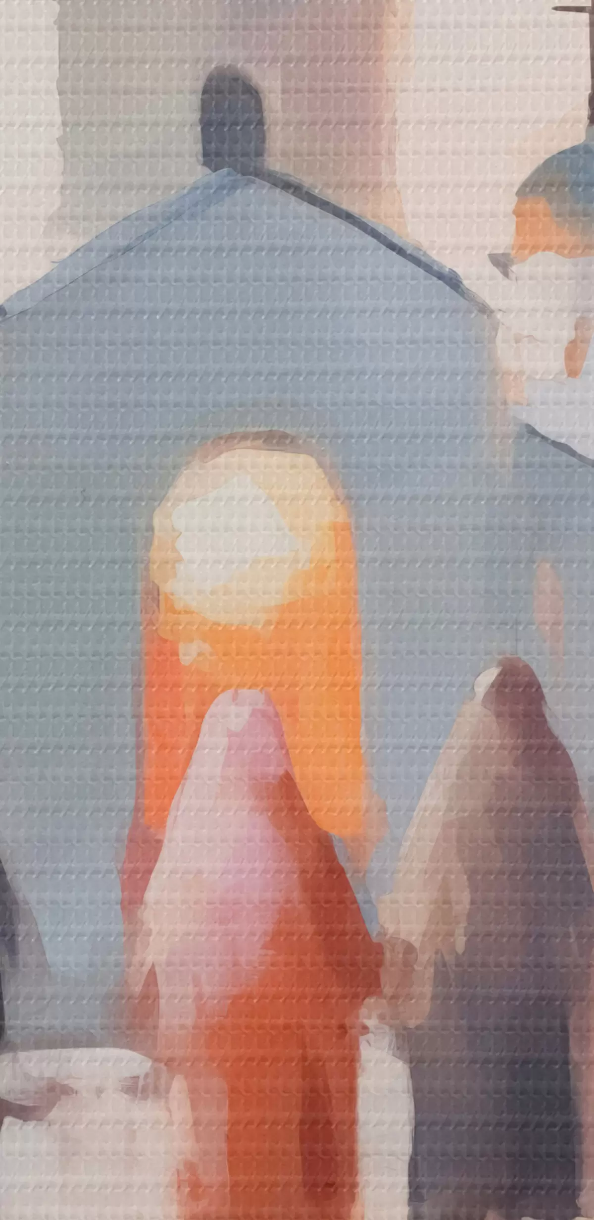Selle lõuendi peenike niidipunus meenutab professionaalse kunstniku lõuendi pinda.