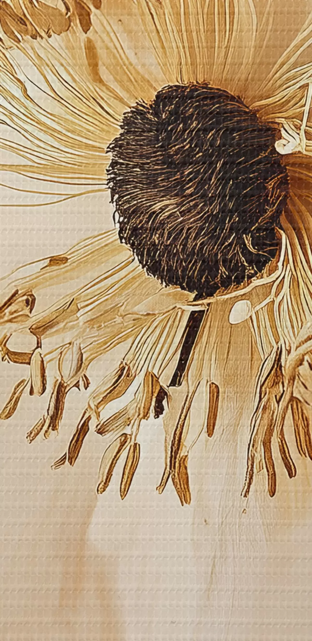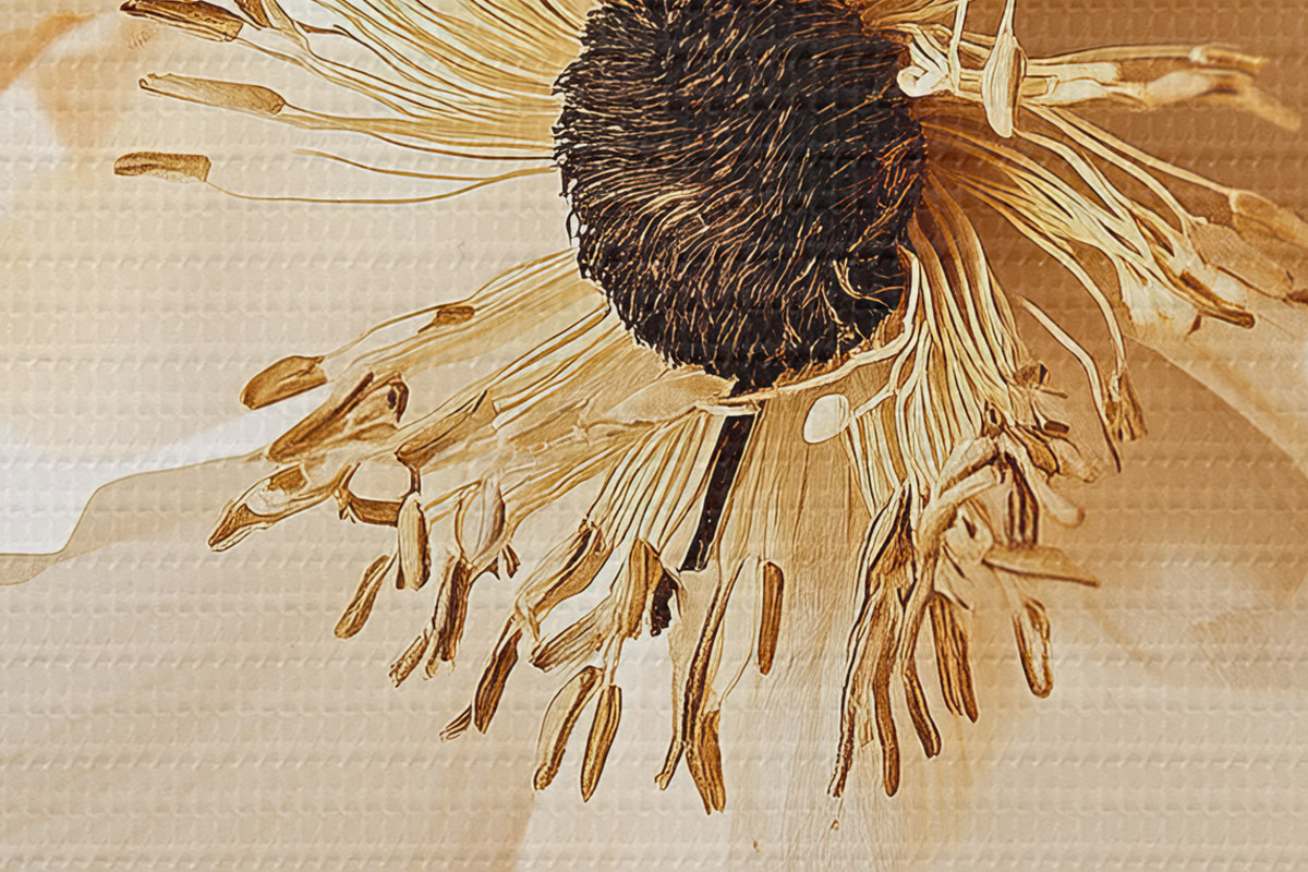 Selle lõuendi peenike niidipunus meenutab professionaalse kunstniku lõuendi pinda.