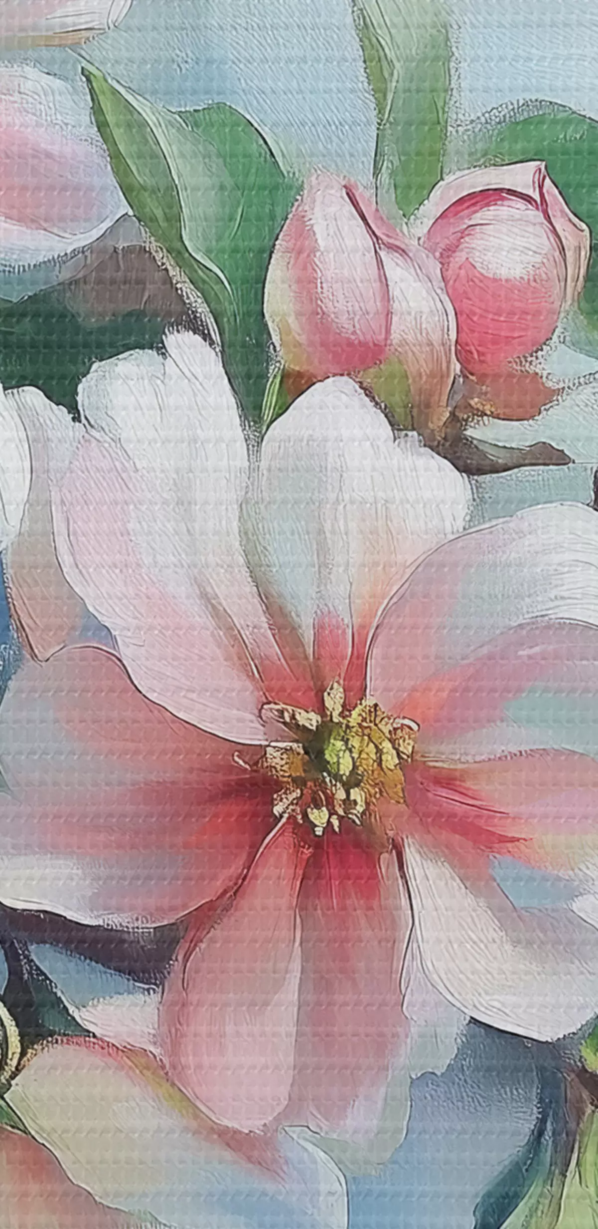 Selle lõuendi peenike niidipunus meenutab professionaalse kunstniku lõuendi pinda.