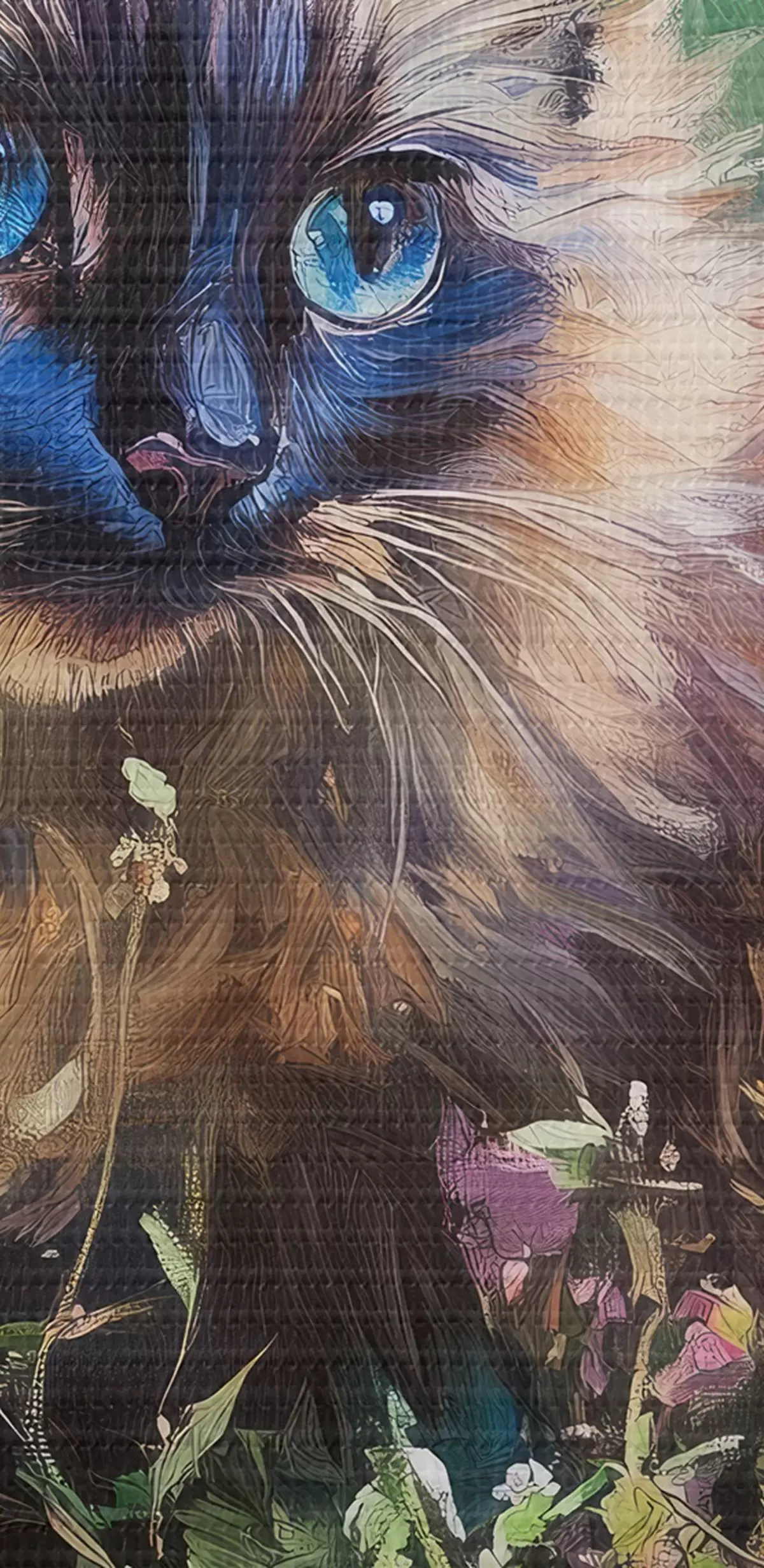Selle lõuendi peenike niidipunus meenutab professionaalse kunstniku lõuendi pinda.