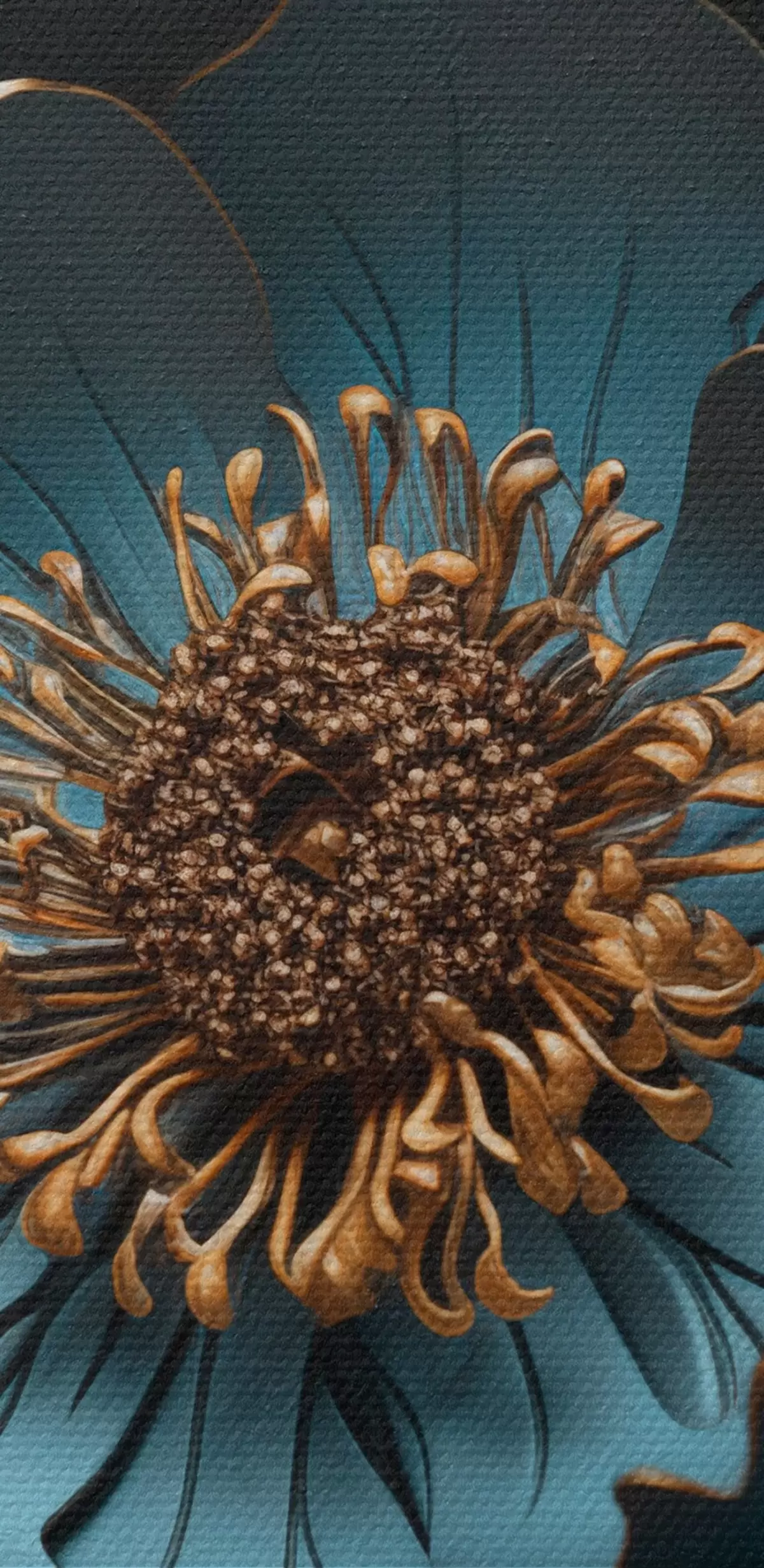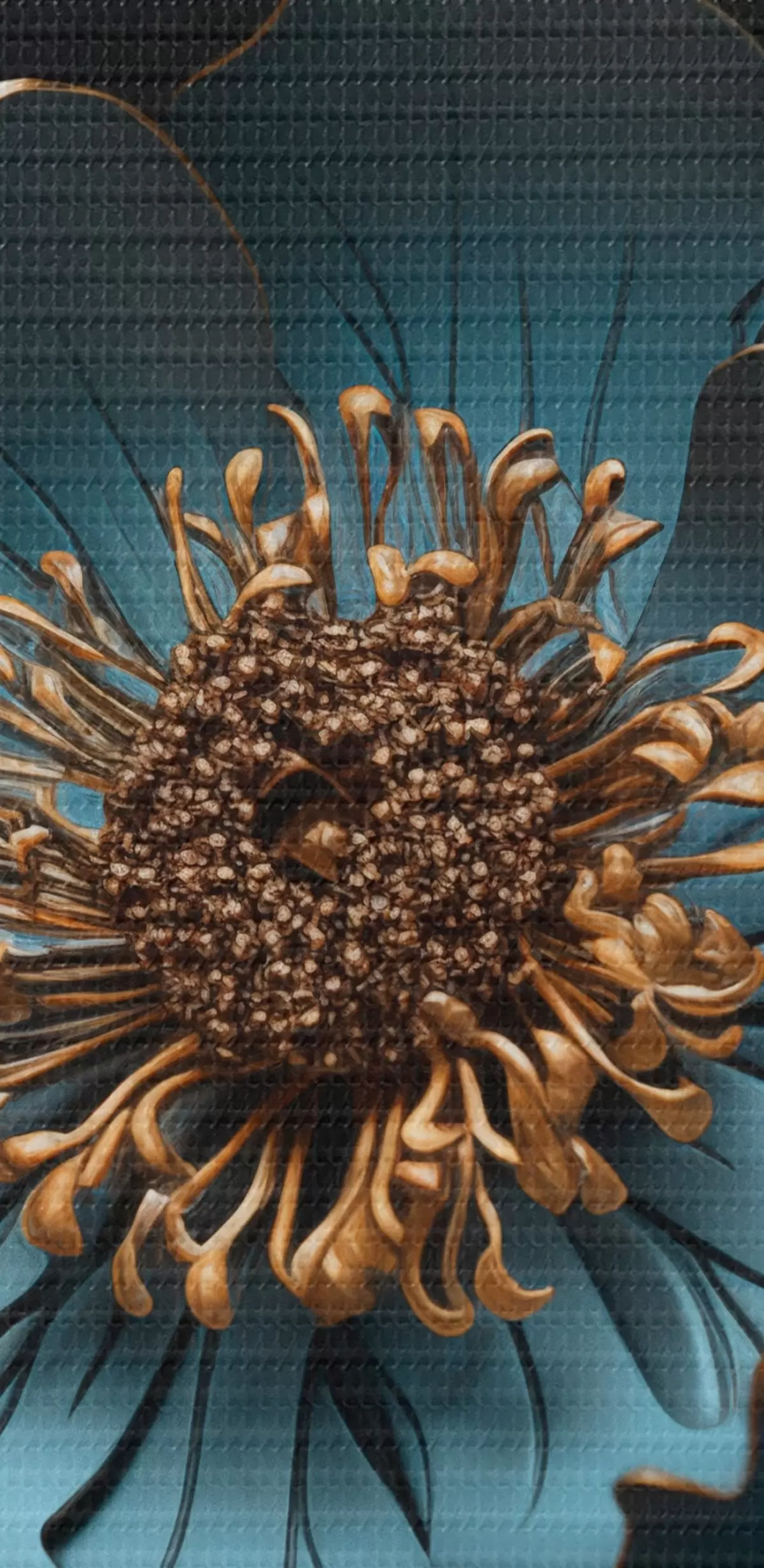 Selle lõuendi peenike niidipunus meenutab professionaalse kunstniku lõuendi pinda.