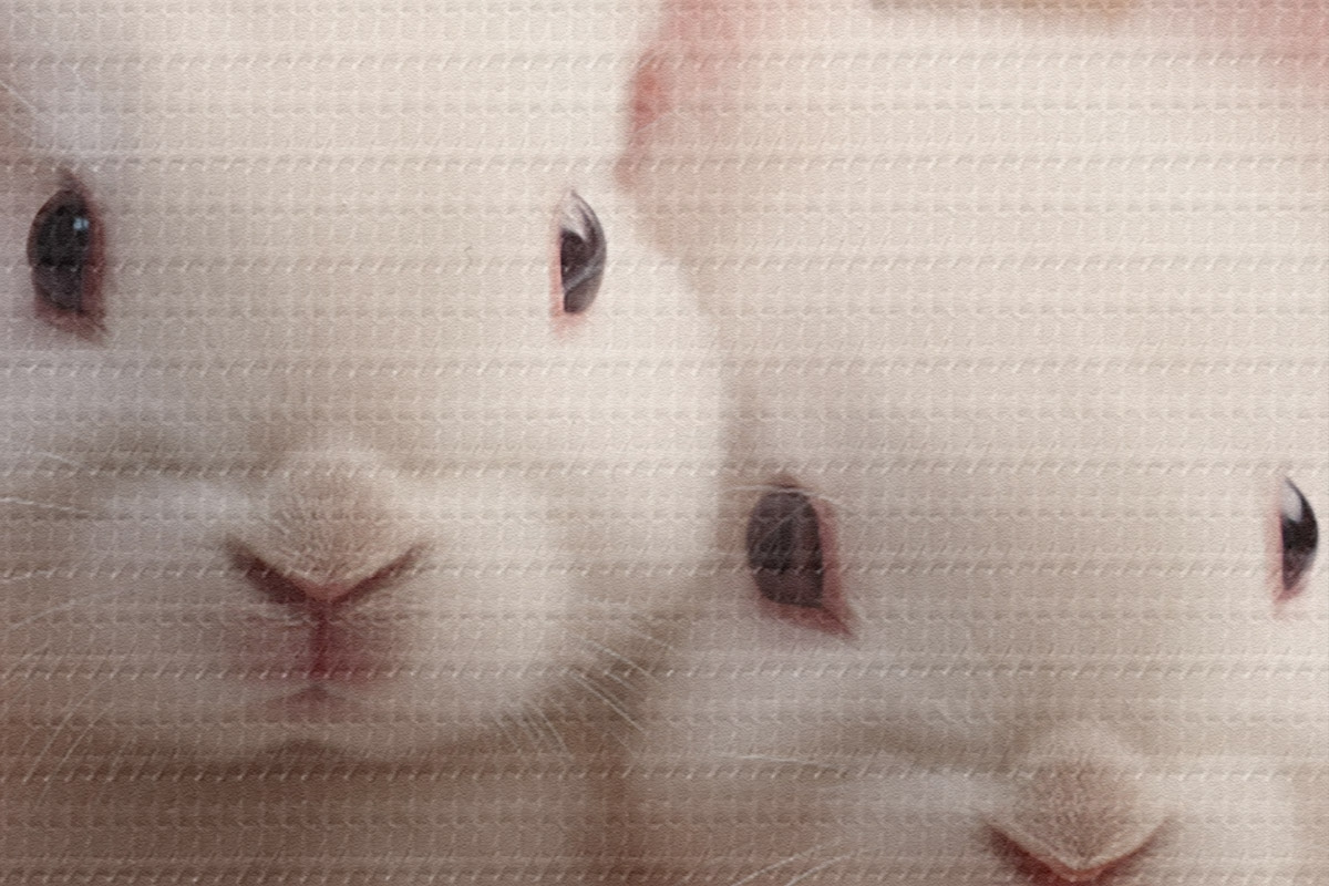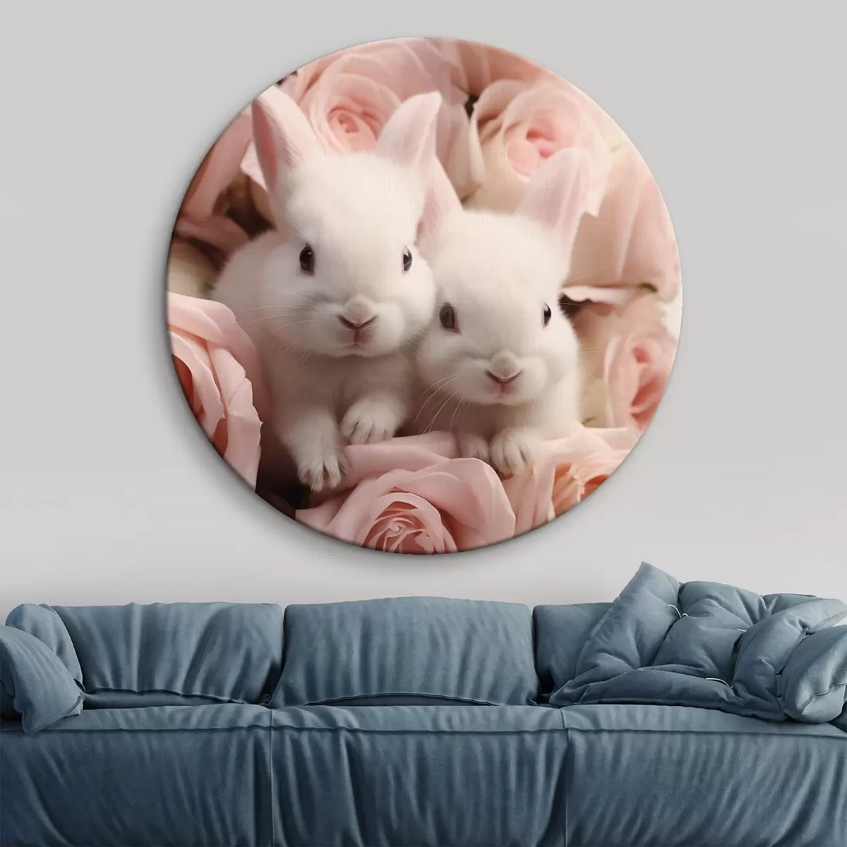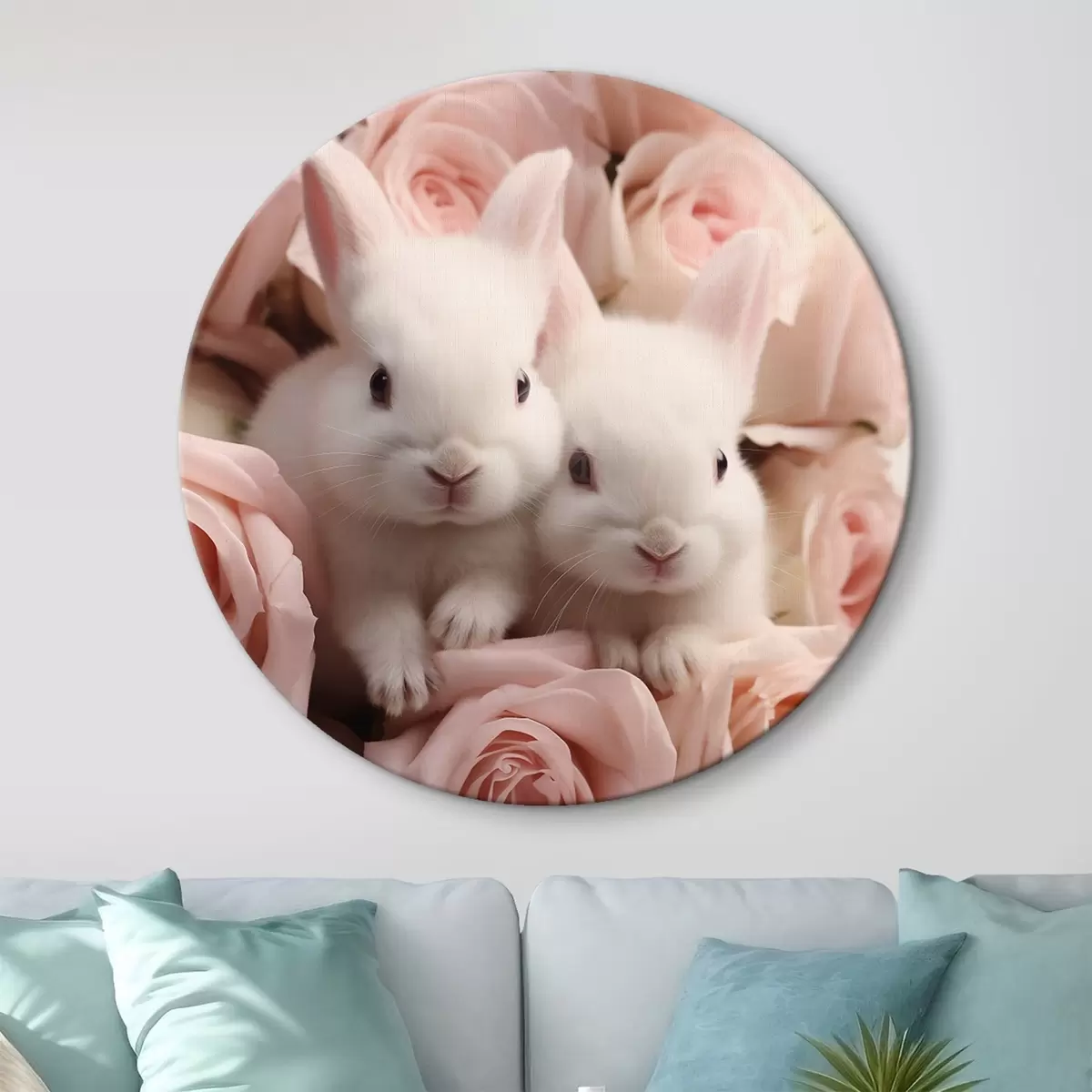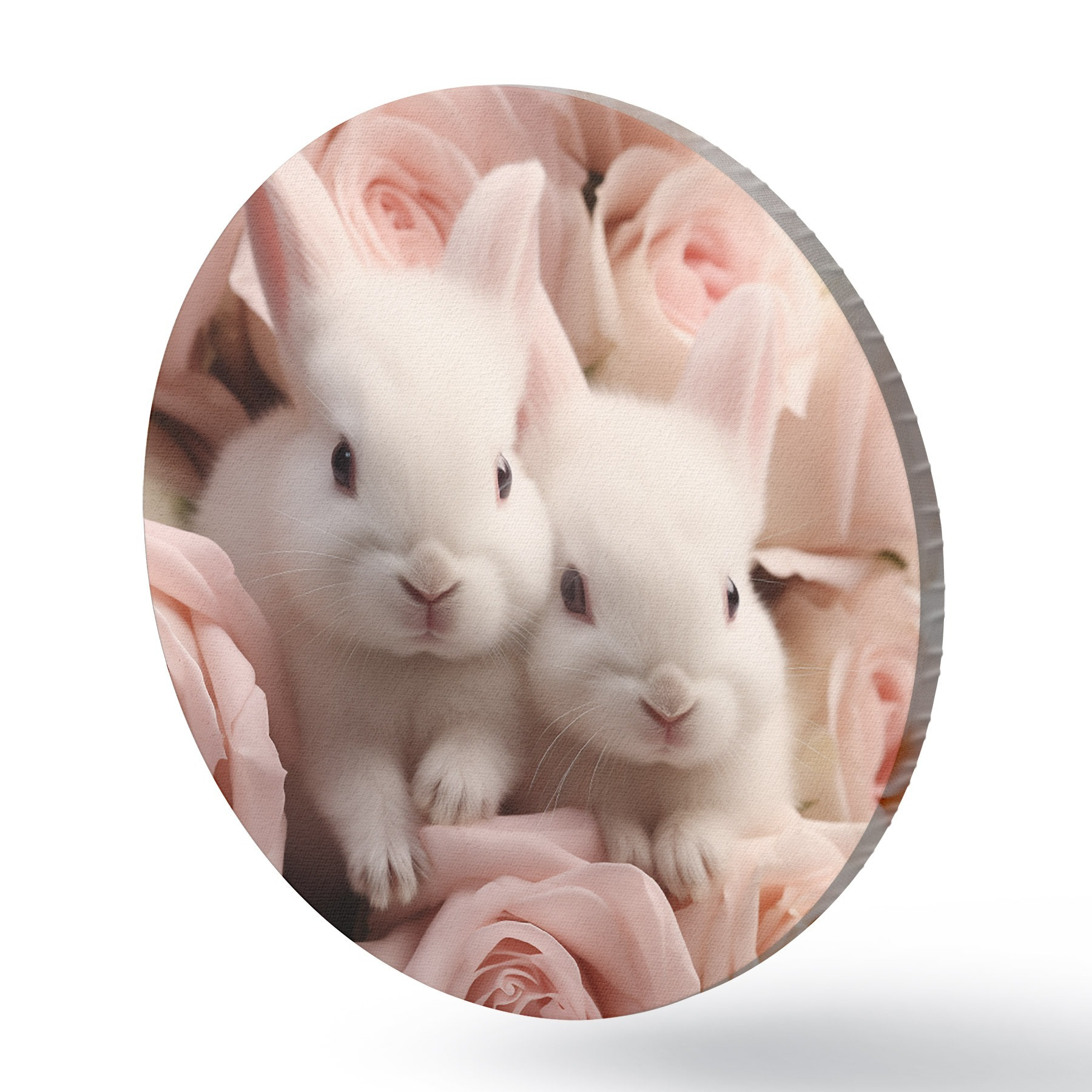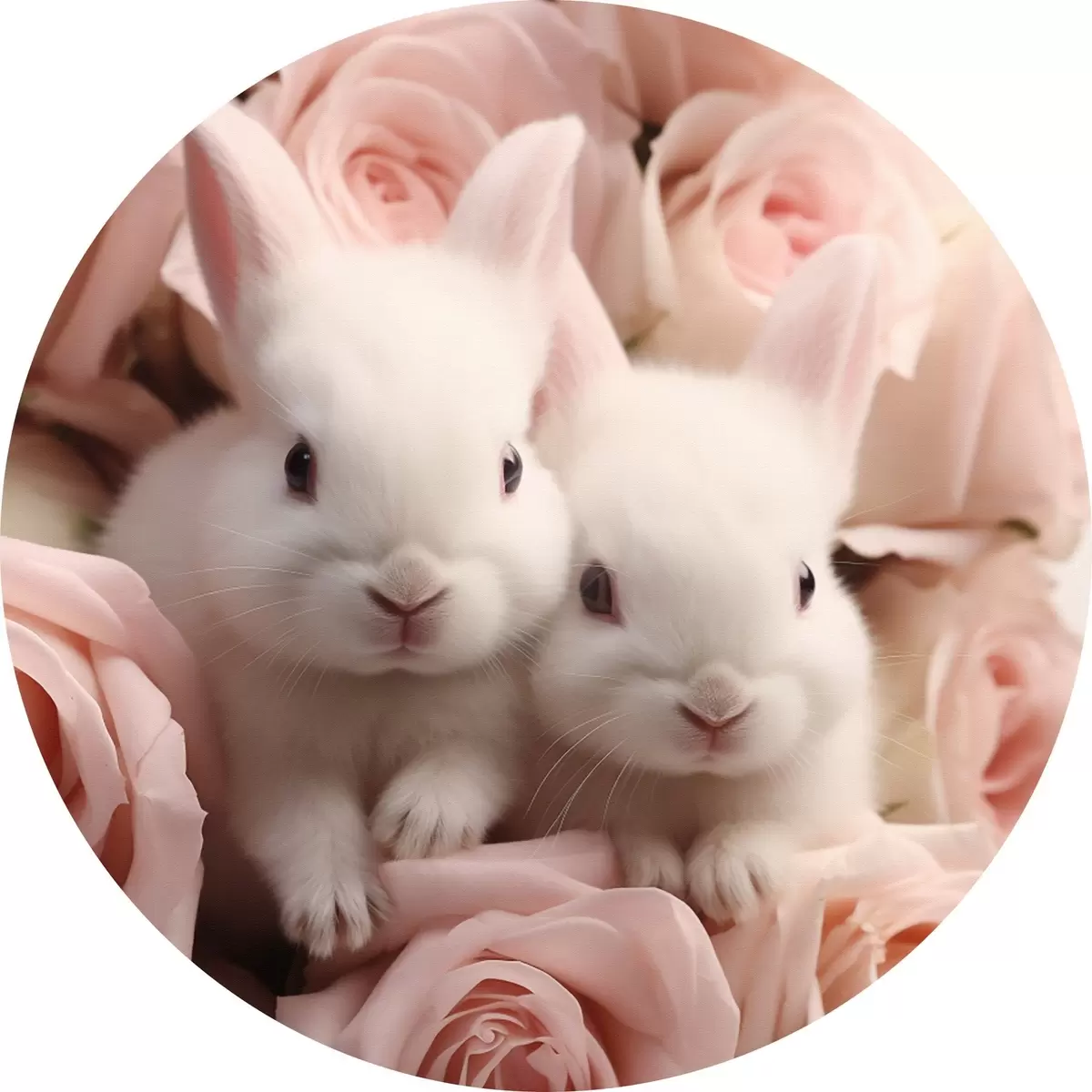 Pilt Kaks valget küülikut õrnade roosililledega Nr r44380