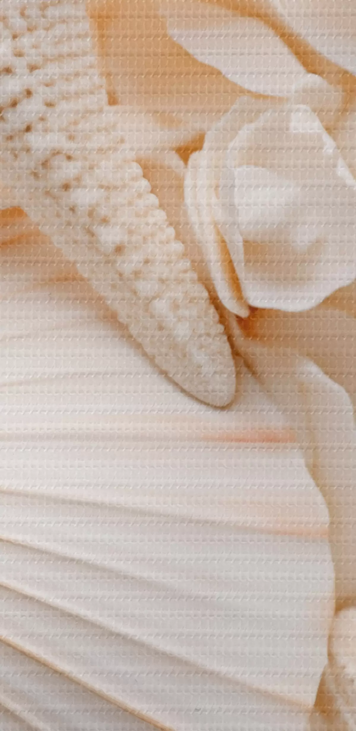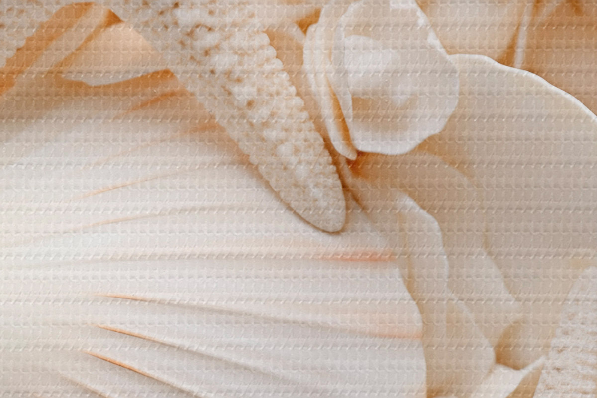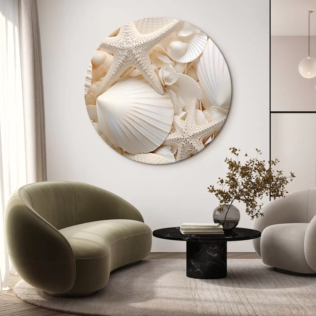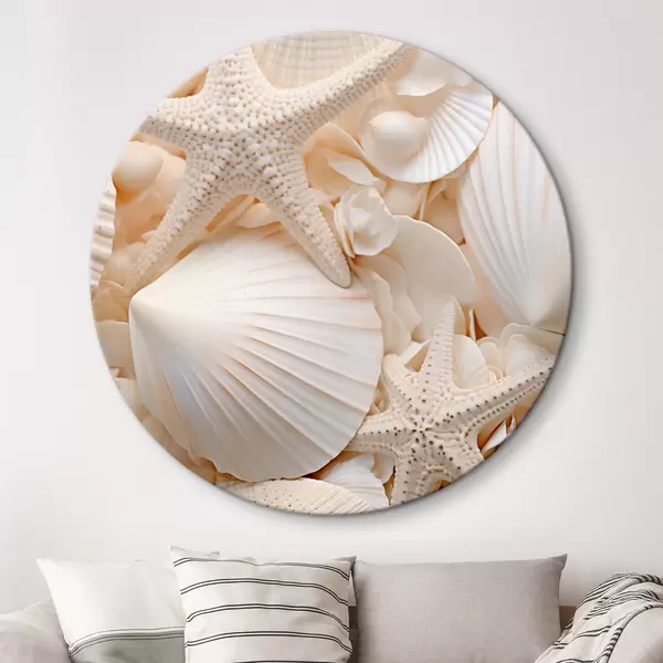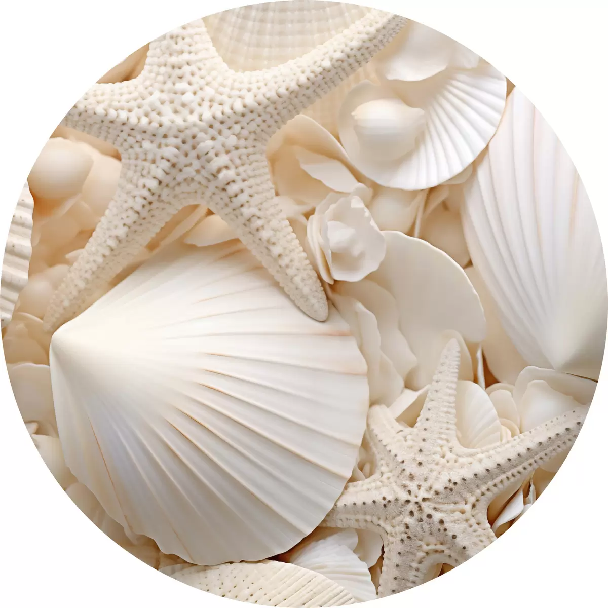 Pilt Dekoratiivsed valged merekarbid ja meritähed, mis loovad tekstuurse ühevärvilise kompositsiooni Nr r44392