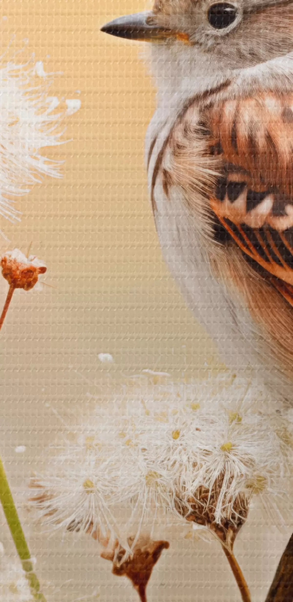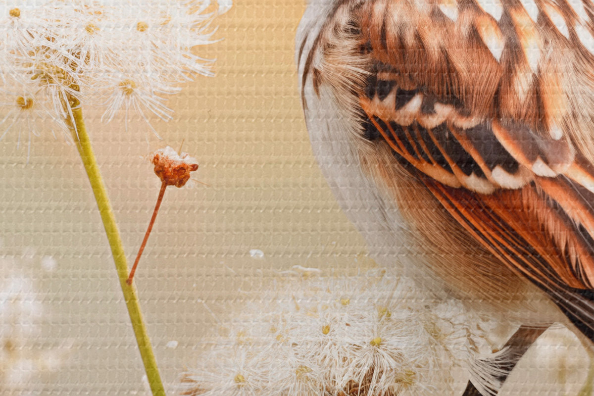 Selle lõuendi peenike niidipunus meenutab professionaalse kunstniku lõuendi pinda.