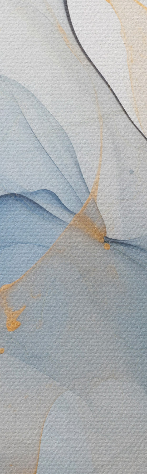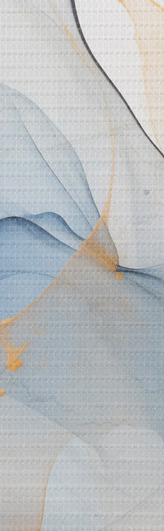 Pilt Abstraktne maal sinise tindiga, vedelad ja orgaanilised kujundid, õrnad tekstuurid valgel taustal Nr r44397