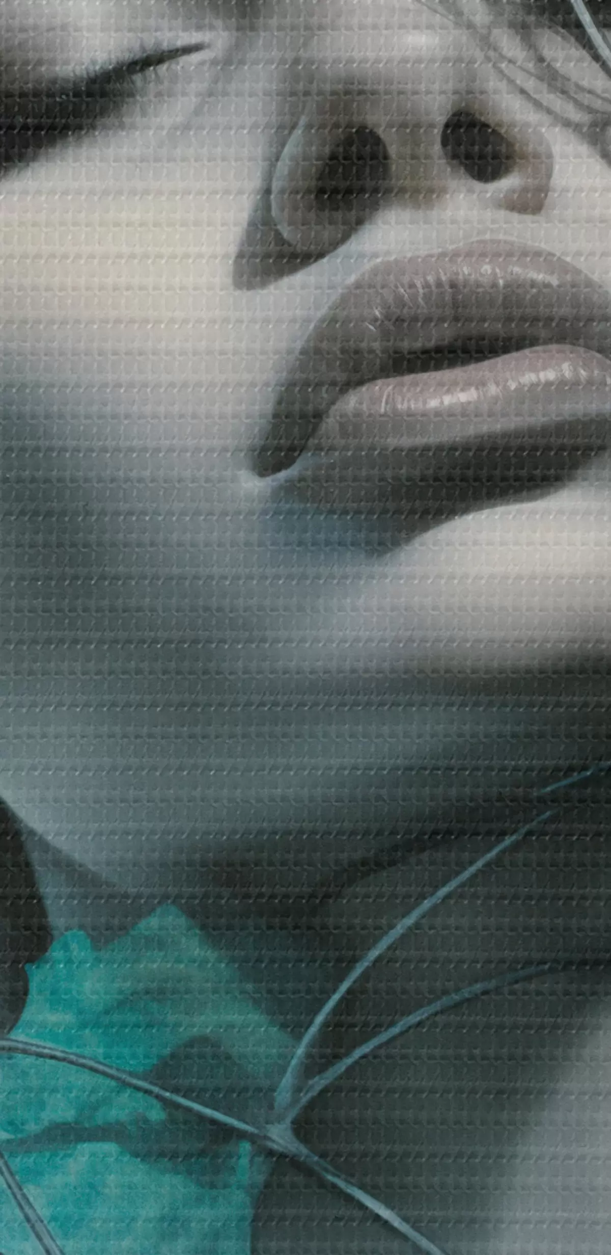 Selle lõuendi peenike niidipunus meenutab professionaalse kunstniku lõuendi pinda.