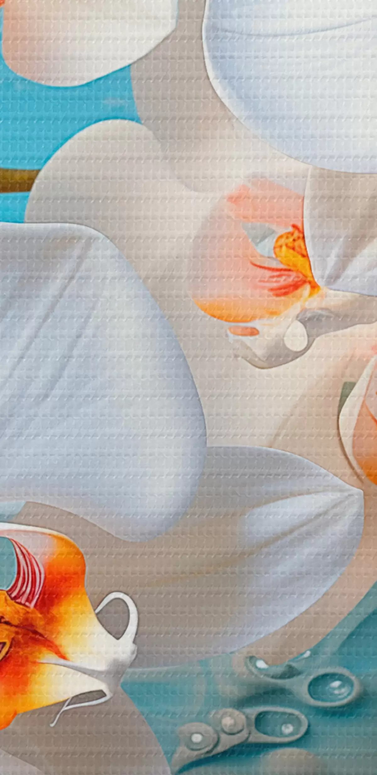 Selle lõuendi peenike niidipunus meenutab professionaalse kunstniku lõuendi pinda.