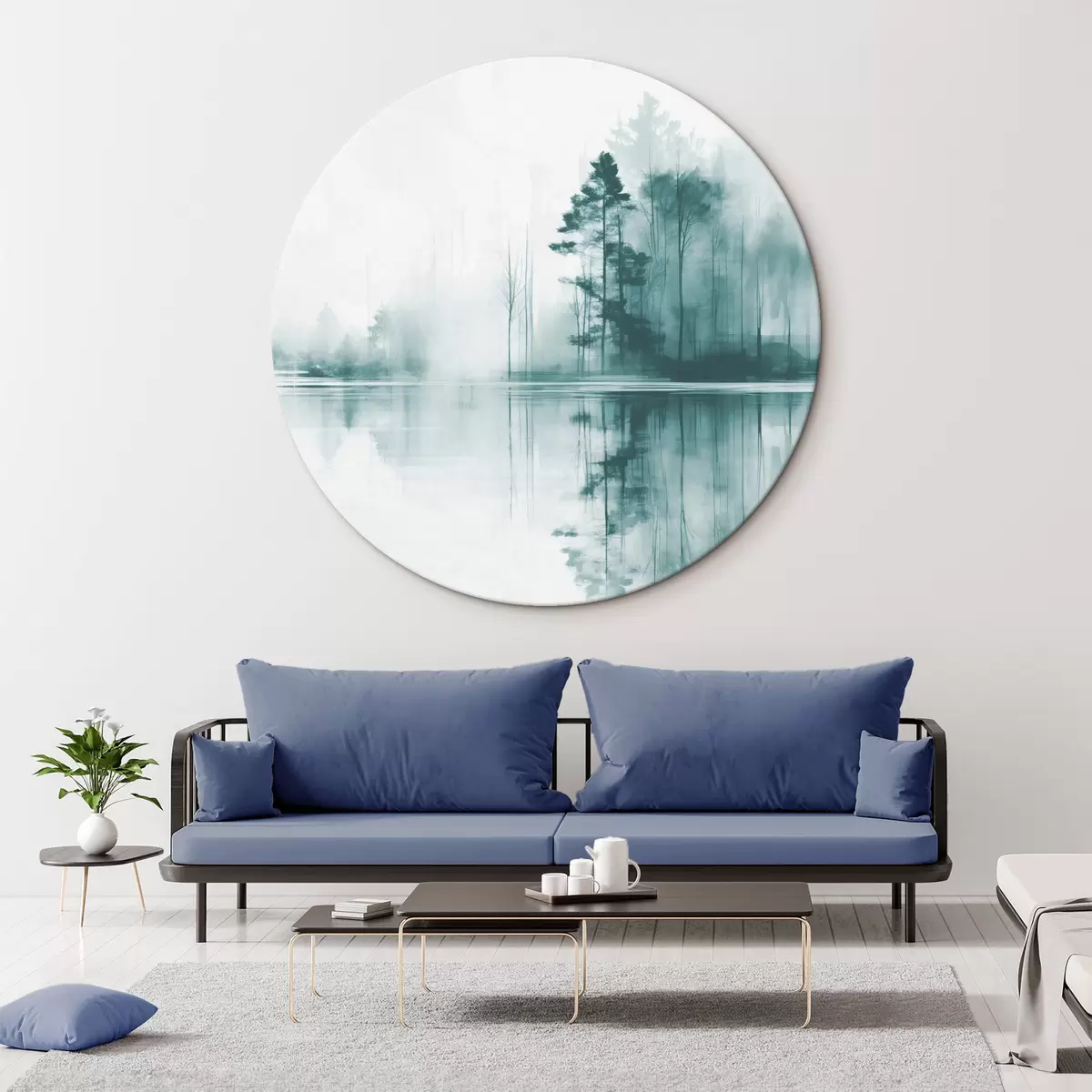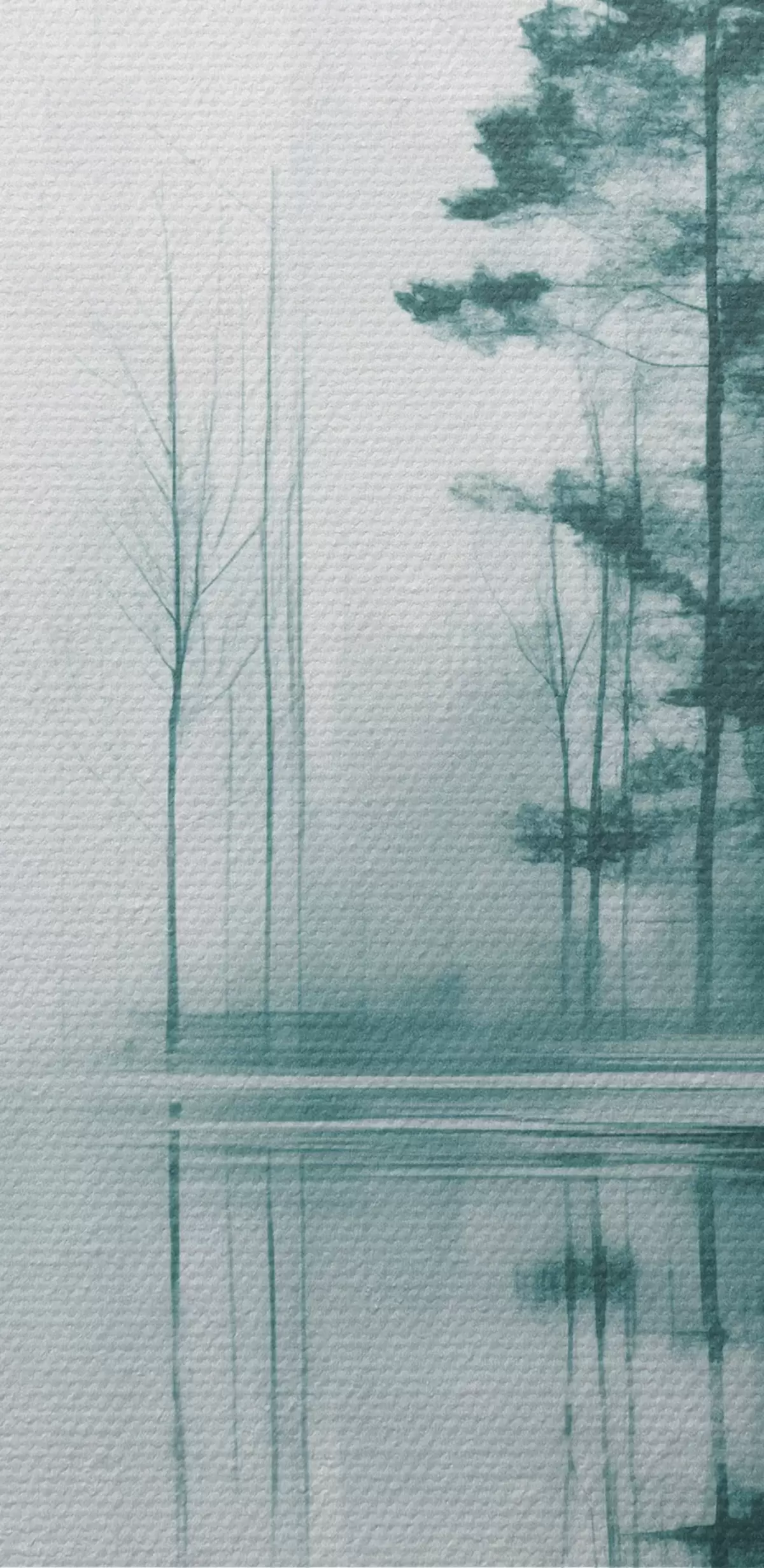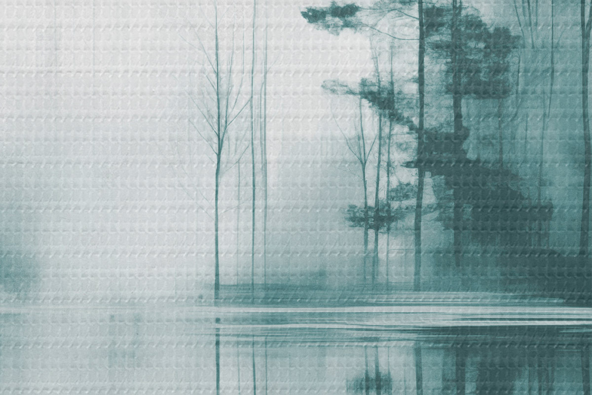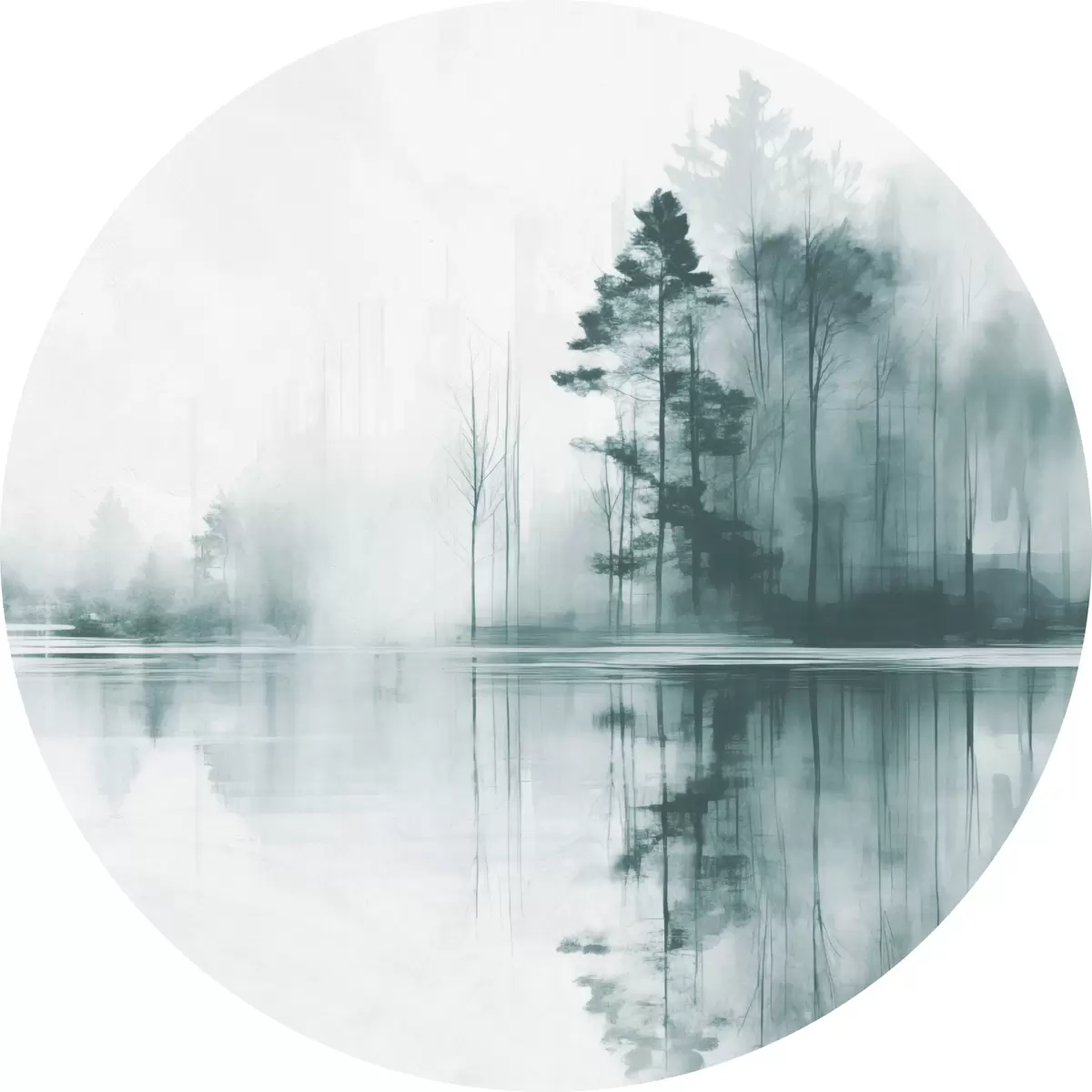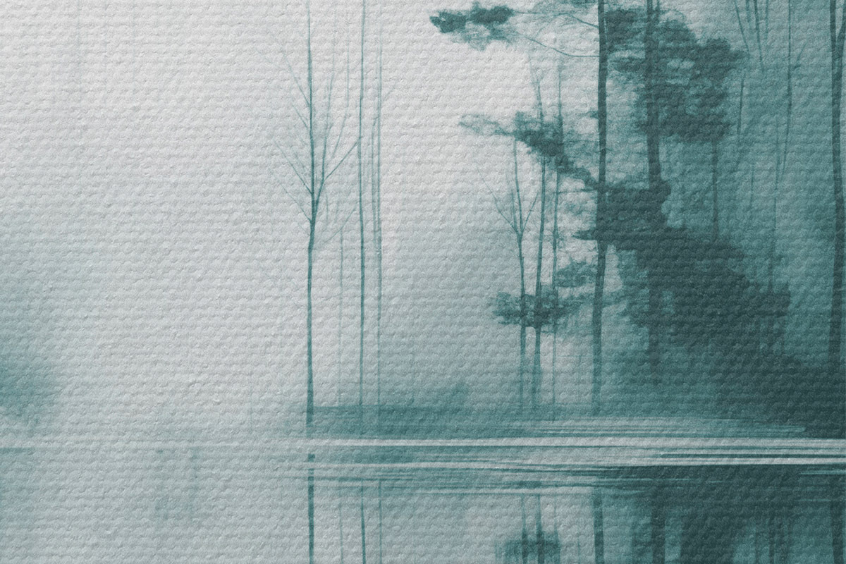 Pilt Abstraktne mets, kus kõrged puud peegelduvad vees, summutatud värvipalett Nr r44403