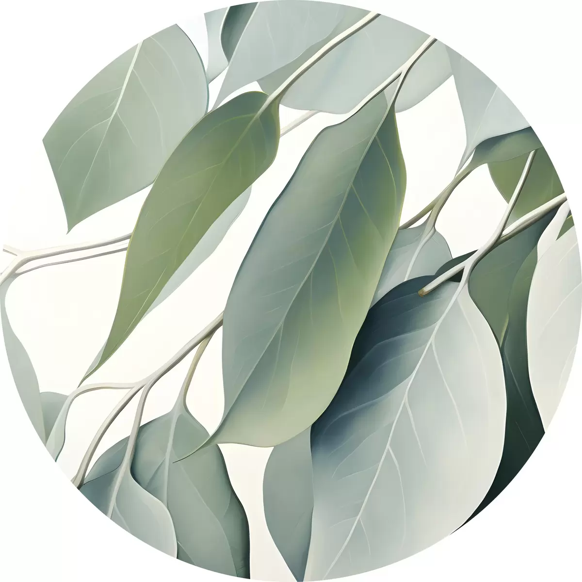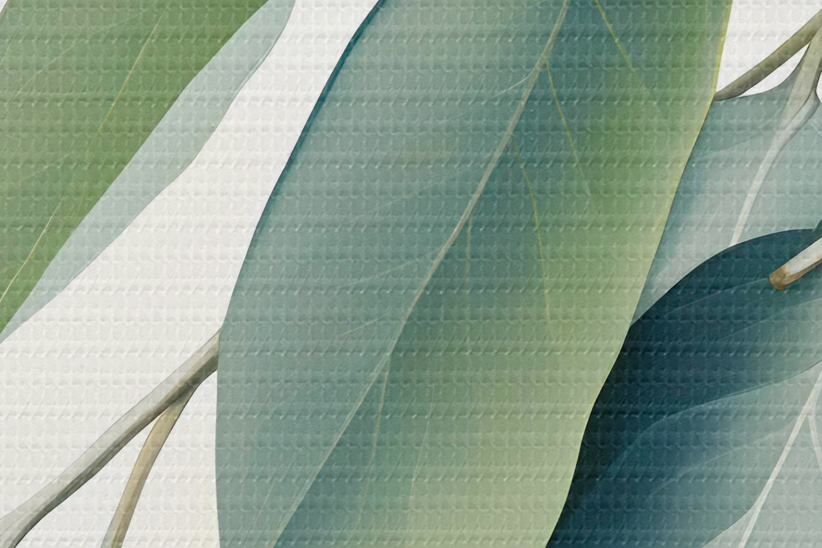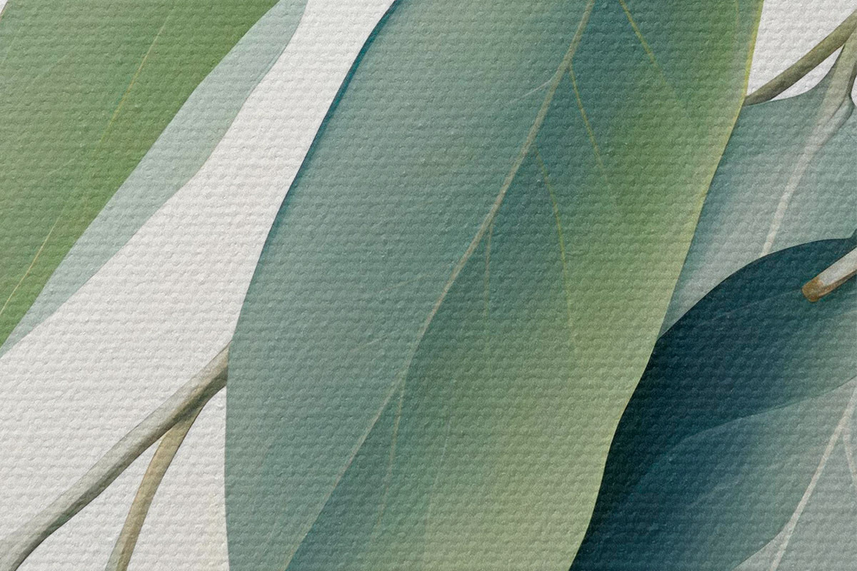 Pilt Eukalüpti lehed pehme, vaoshoitud värvipaletiga, rahustav ja loomulik esteetika Nr r44410