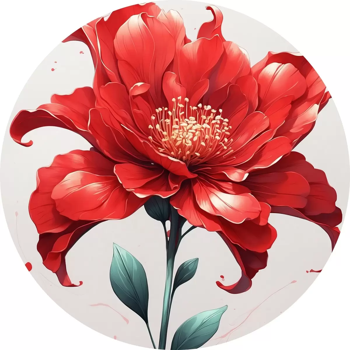 Pilt Punane lill valge-punasel taustal Nr r44442