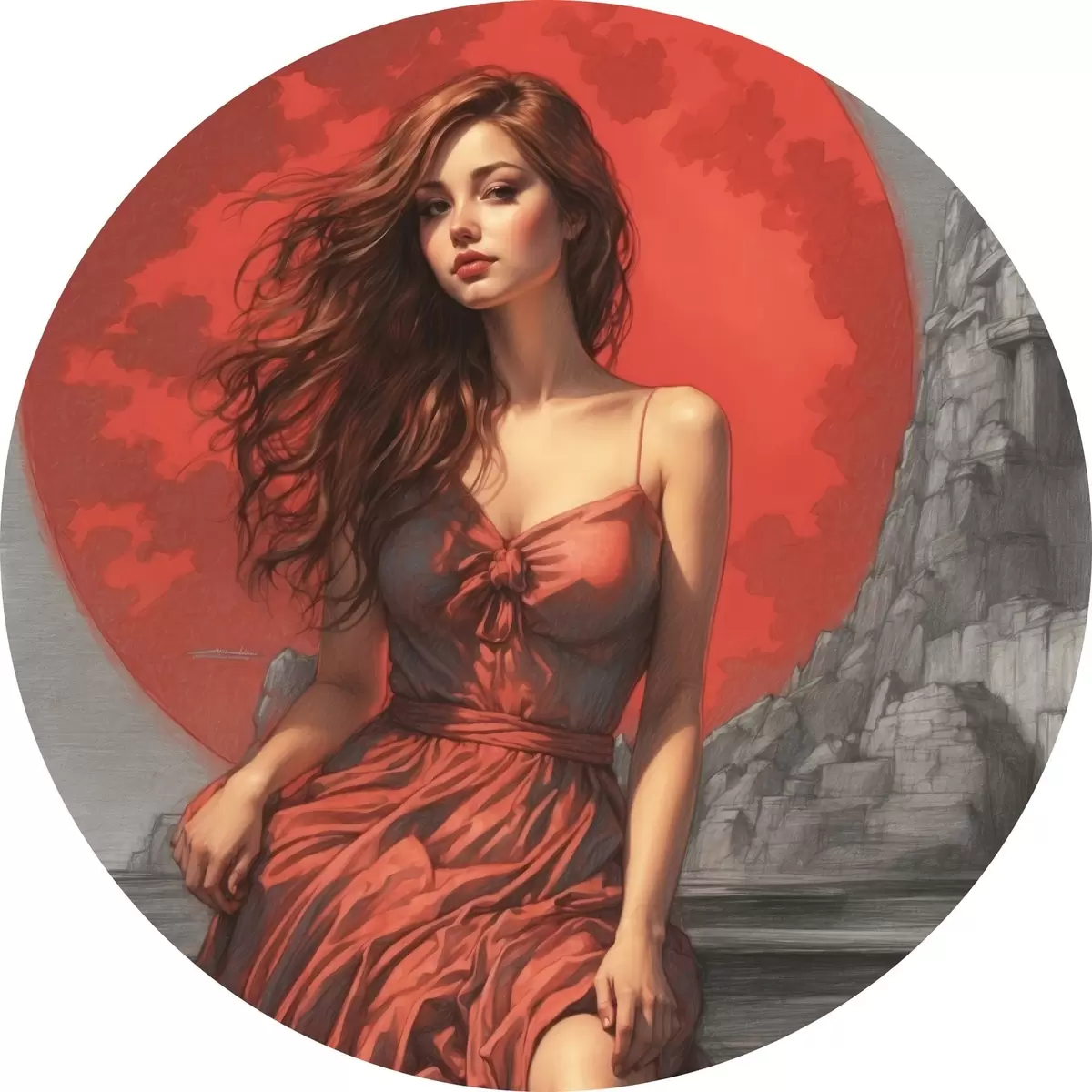 Pilt Tüdruk punase kuu taustal Nr r44448