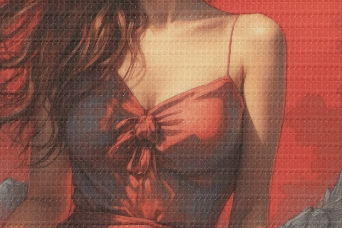 Selle lõuendi peenike niidipunus meenutab professionaalse kunstniku lõuendi pinda.