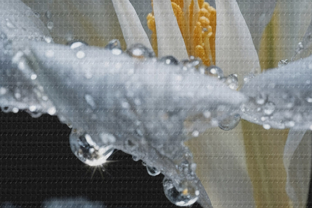 Selle lõuendi peenike niidipunus meenutab professionaalse kunstniku lõuendi pinda.