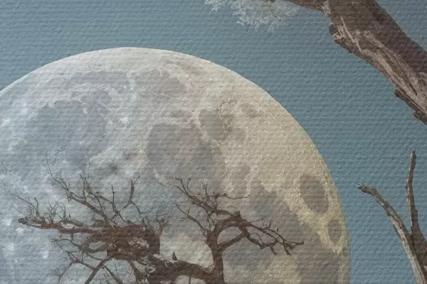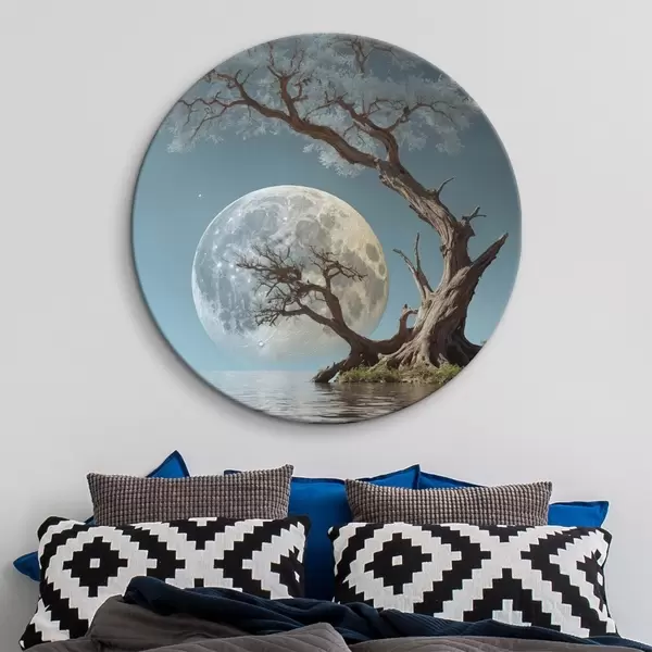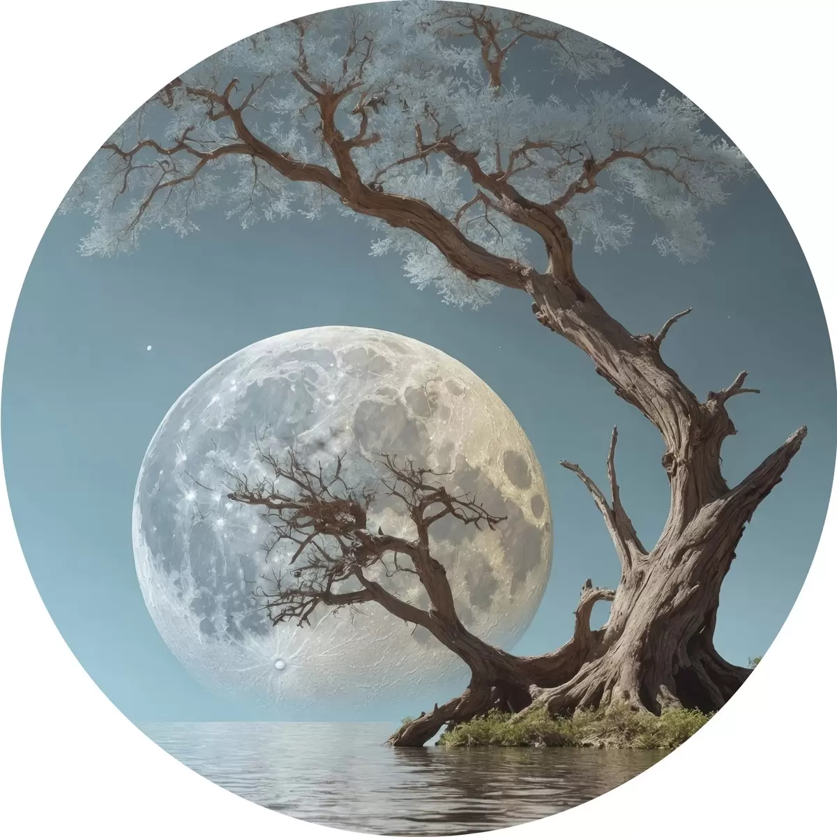 Pilt Kuu taustal järve keskel kasvav puu Nr r44481
