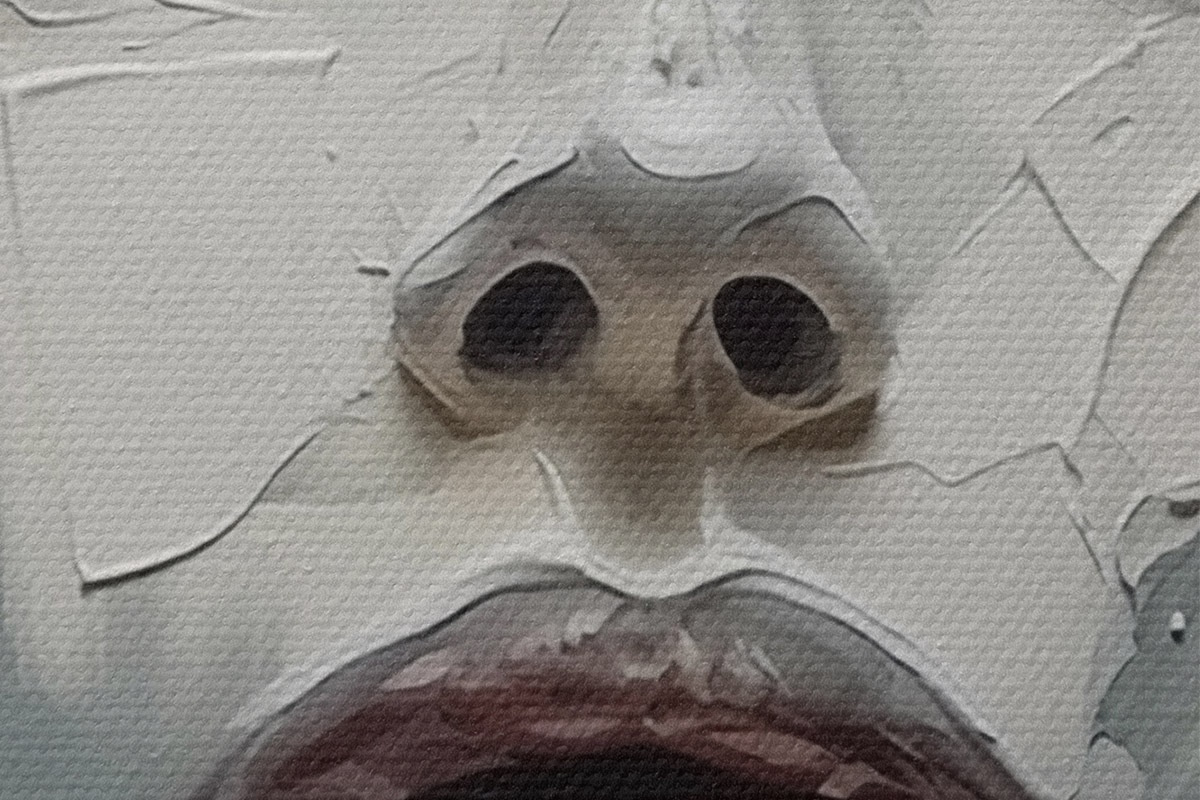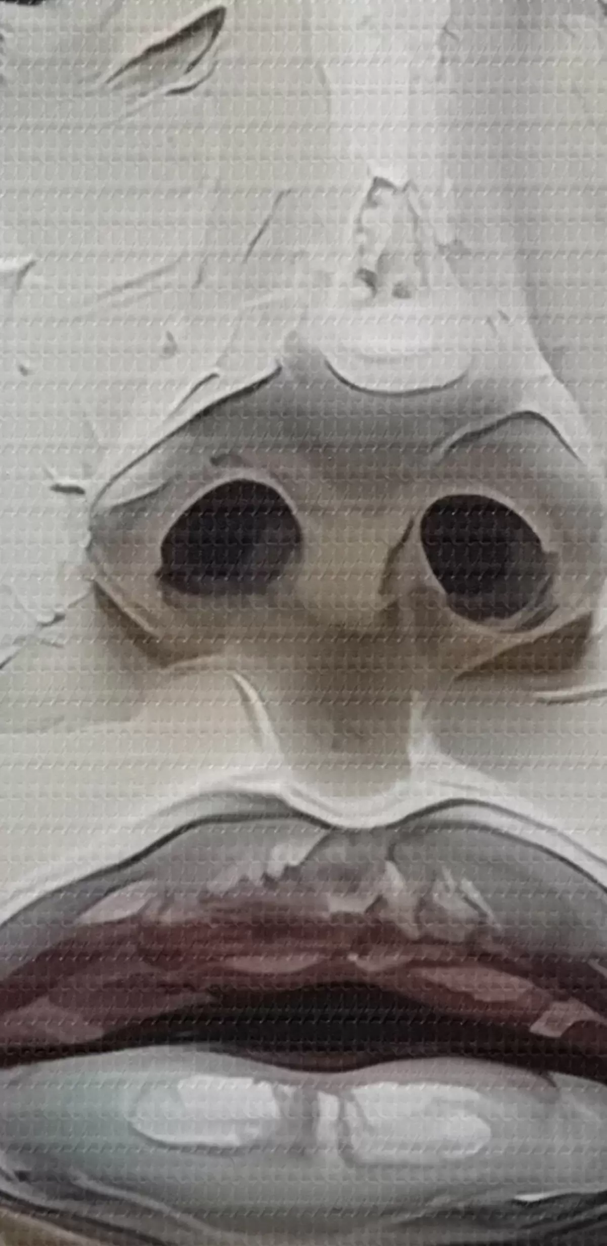 Selle lõuendi peenike niidipunus meenutab professionaalse kunstniku lõuendi pinda.